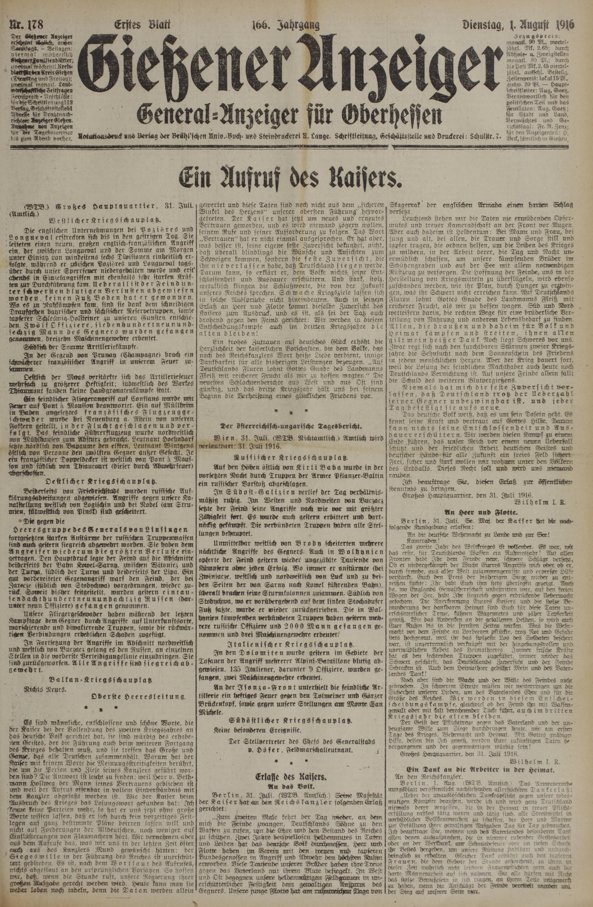 1.8.1916 Erstes Blatt