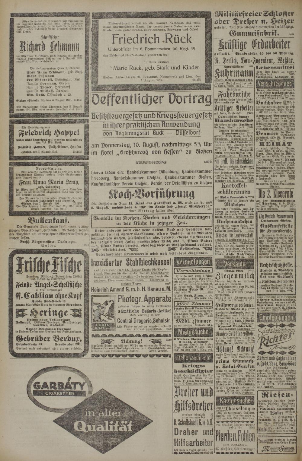 7.8.1916 Erstes Blatt