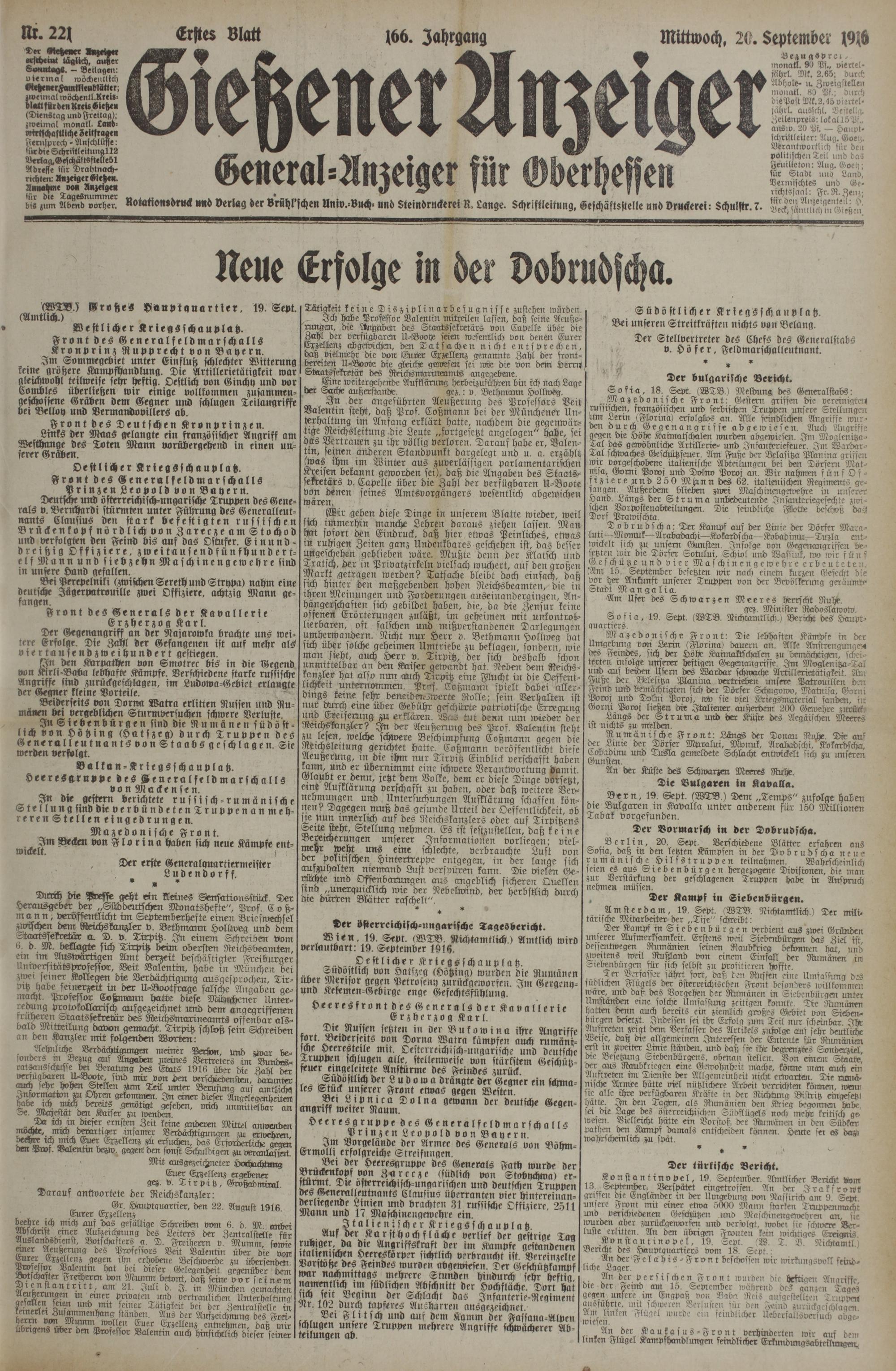 20.9.1916 Erstes Blatt