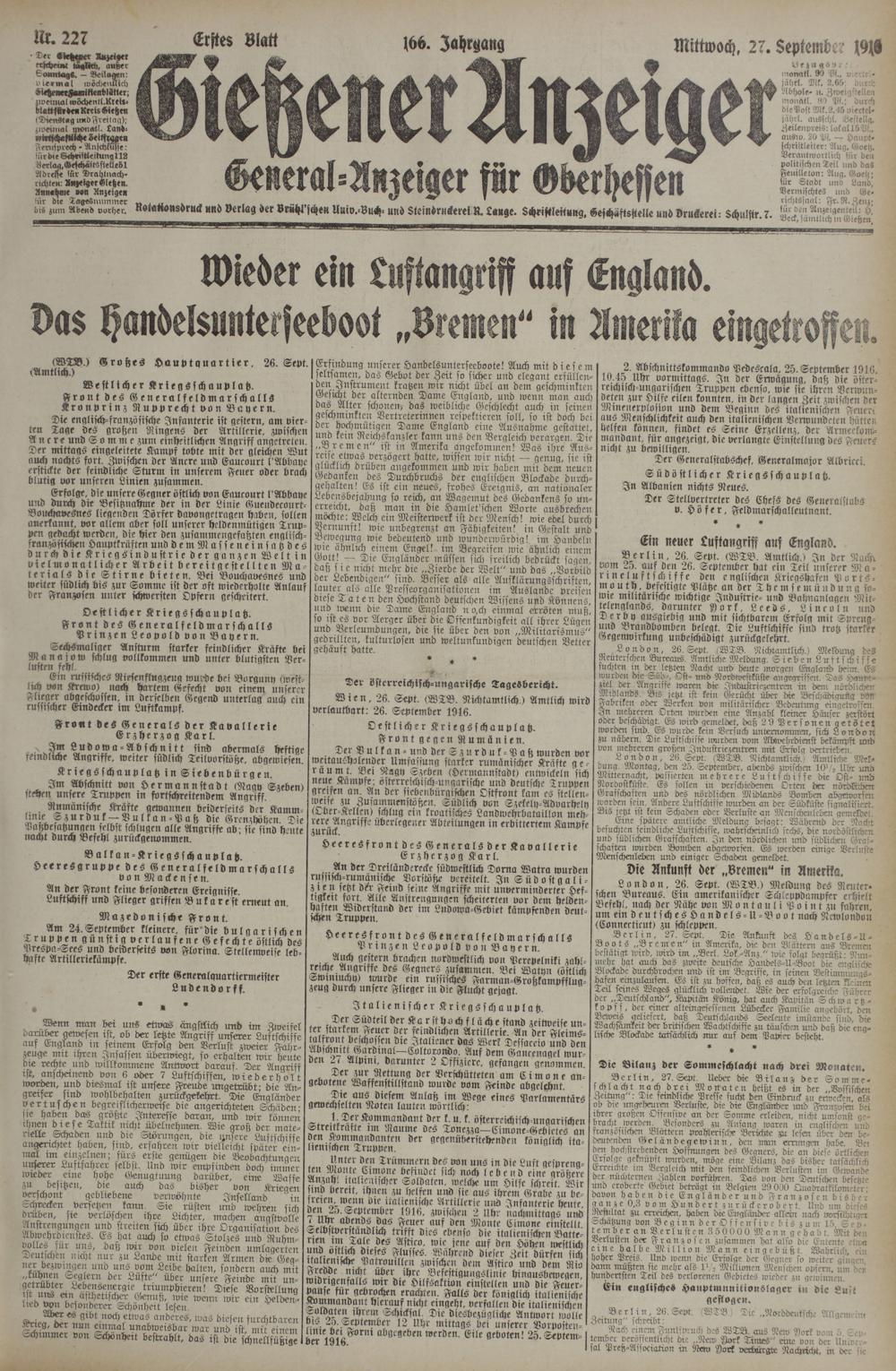 27.9.1916 Erstes Blatt