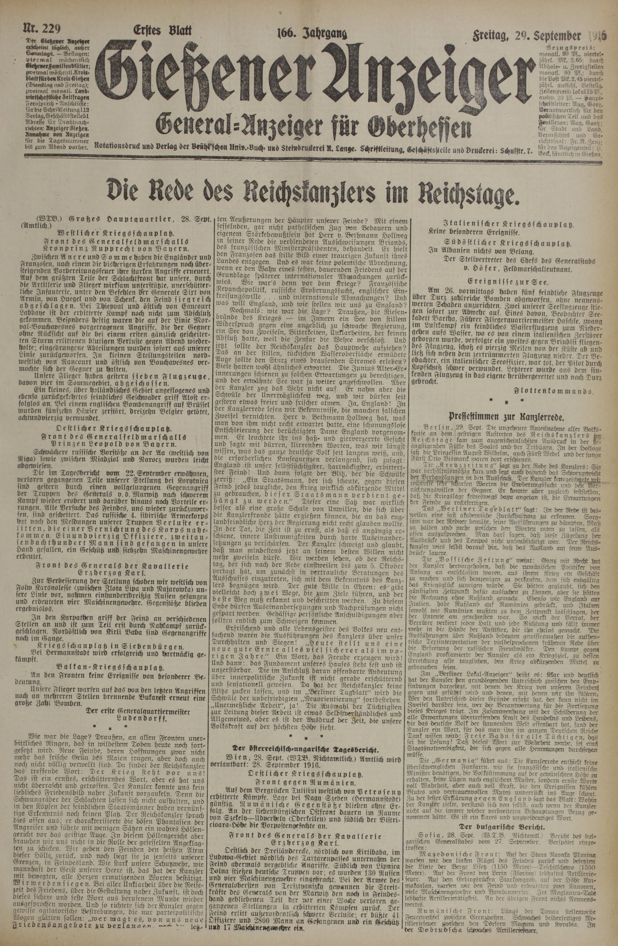 29.9.1916 Erstes Blatt