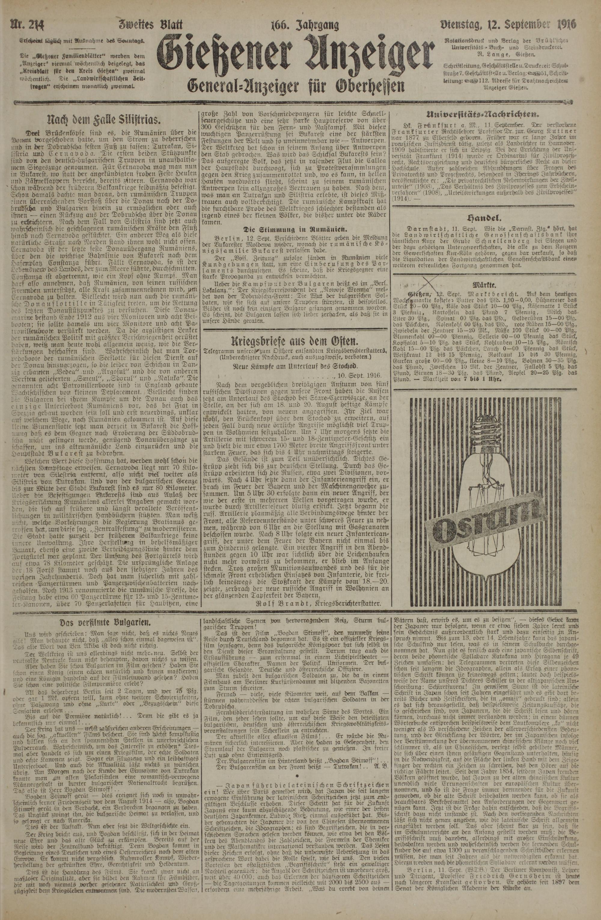 12.9.1916 Zweites Blatt