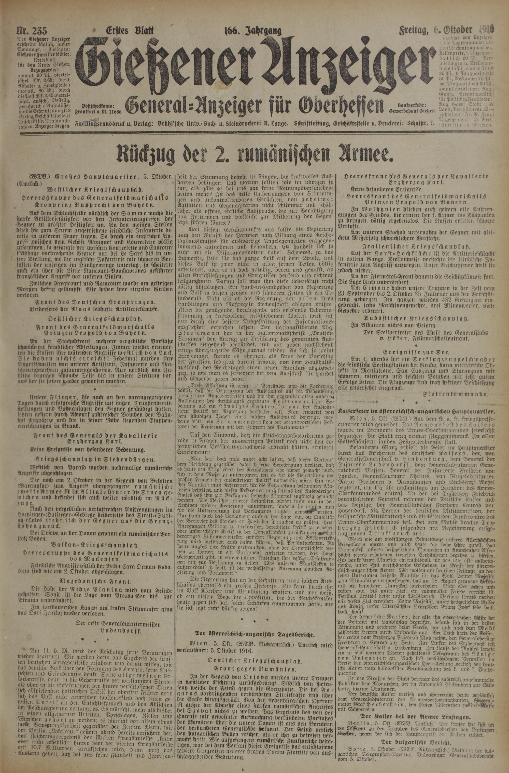 6.10.1916 Erstes Blatt