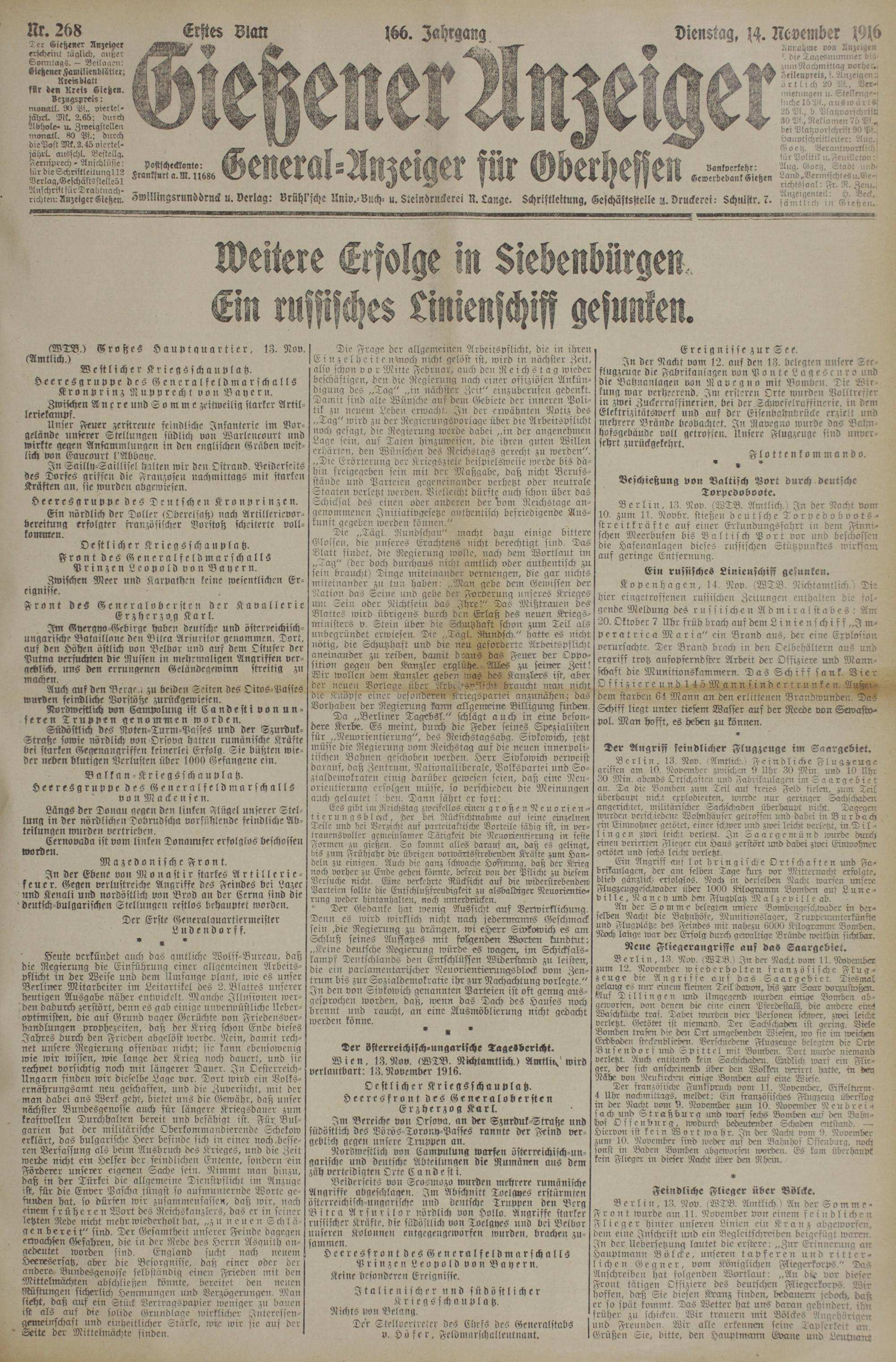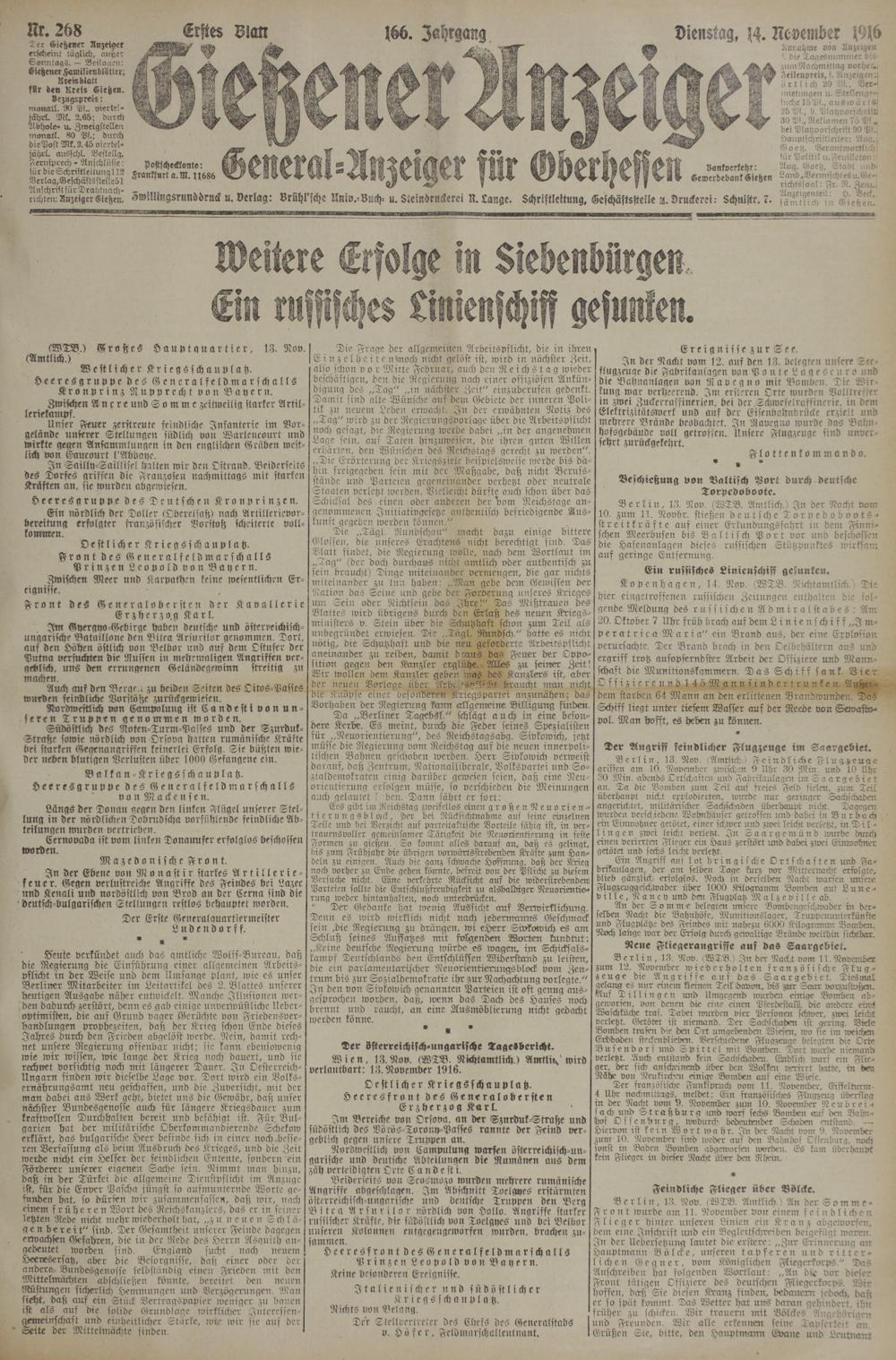 14.11.1916 Erstes Blatt
