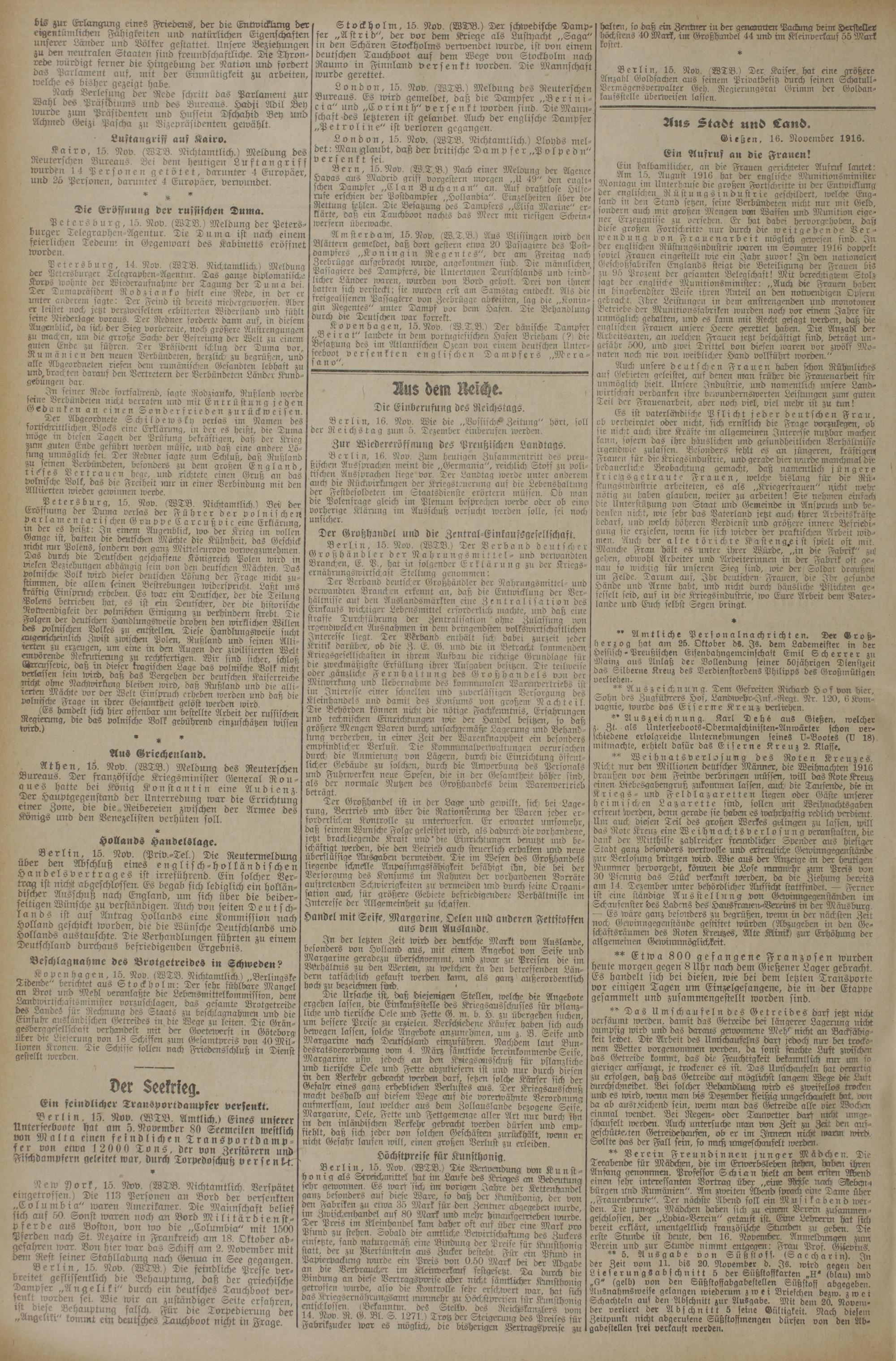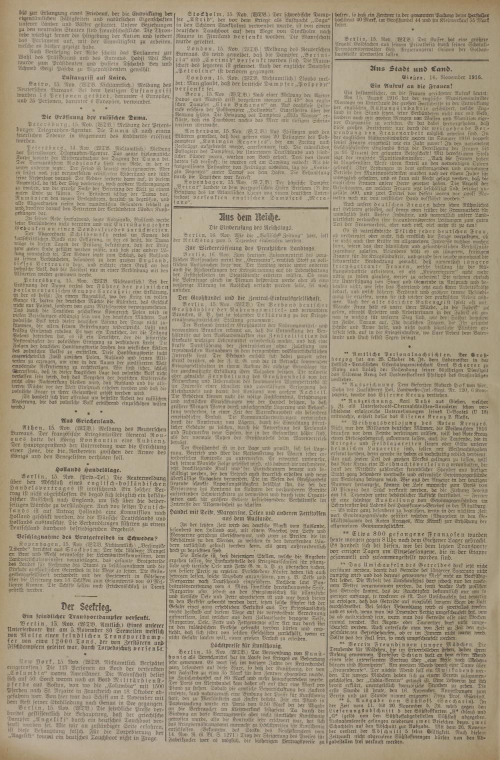 16.11.1916 Erstes Blatt