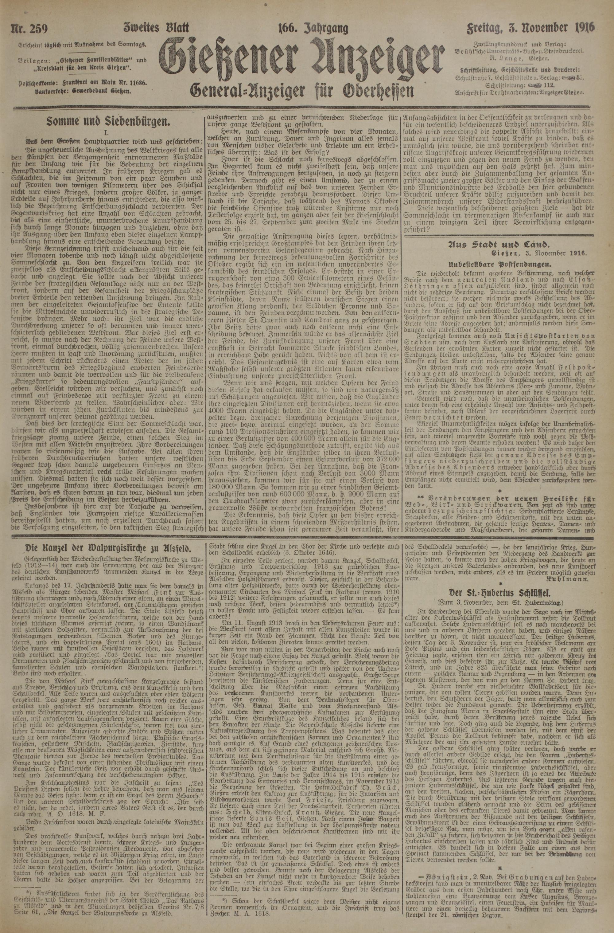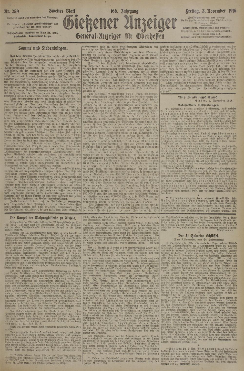 3.11.1916 Zweites Blatt
