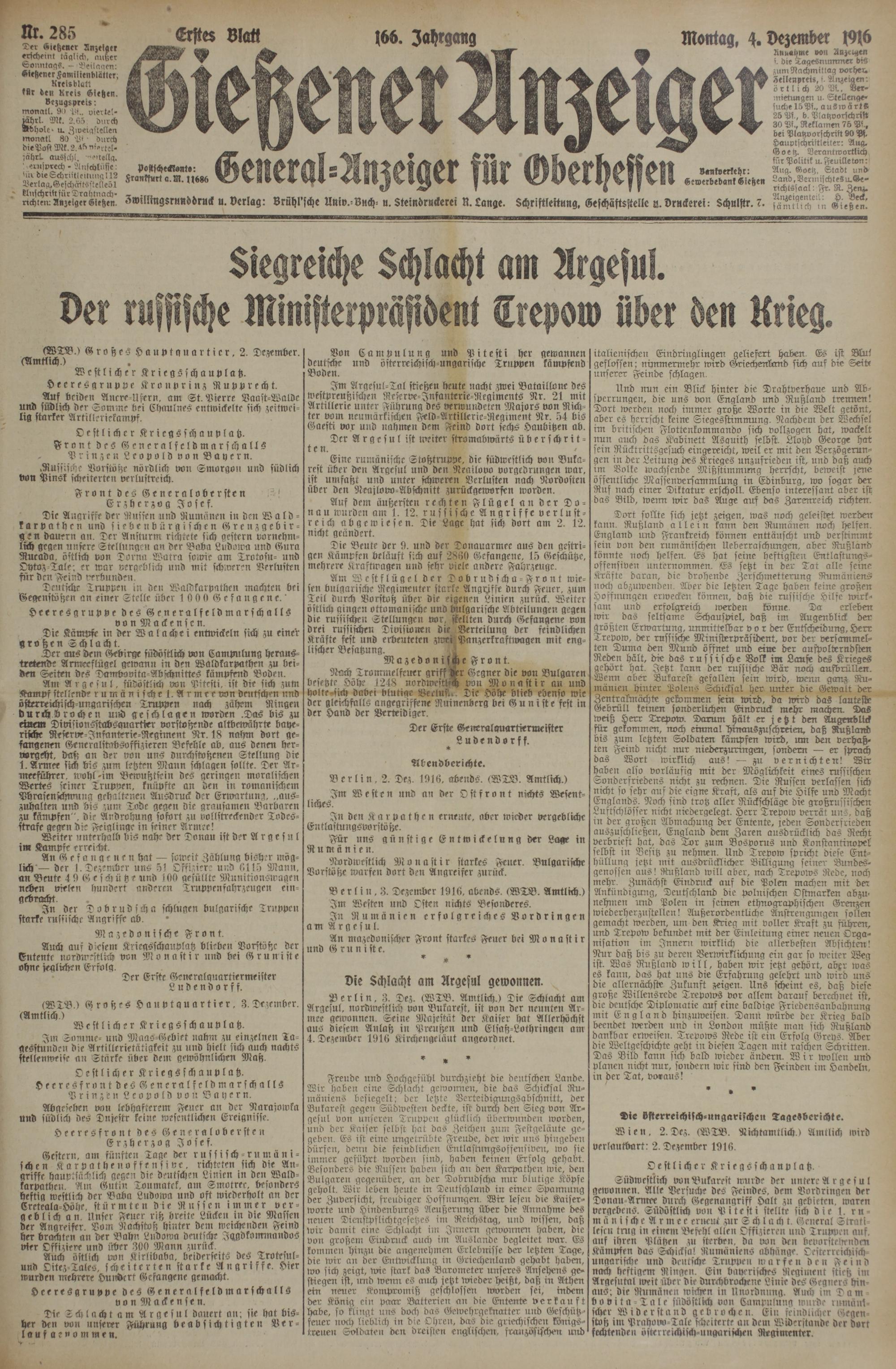4.12.1916 Erstes Blatt