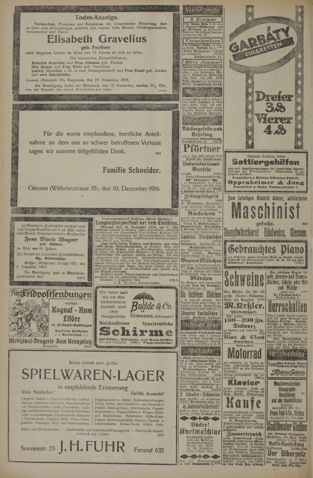 11.12.1916 Erstes Blatt