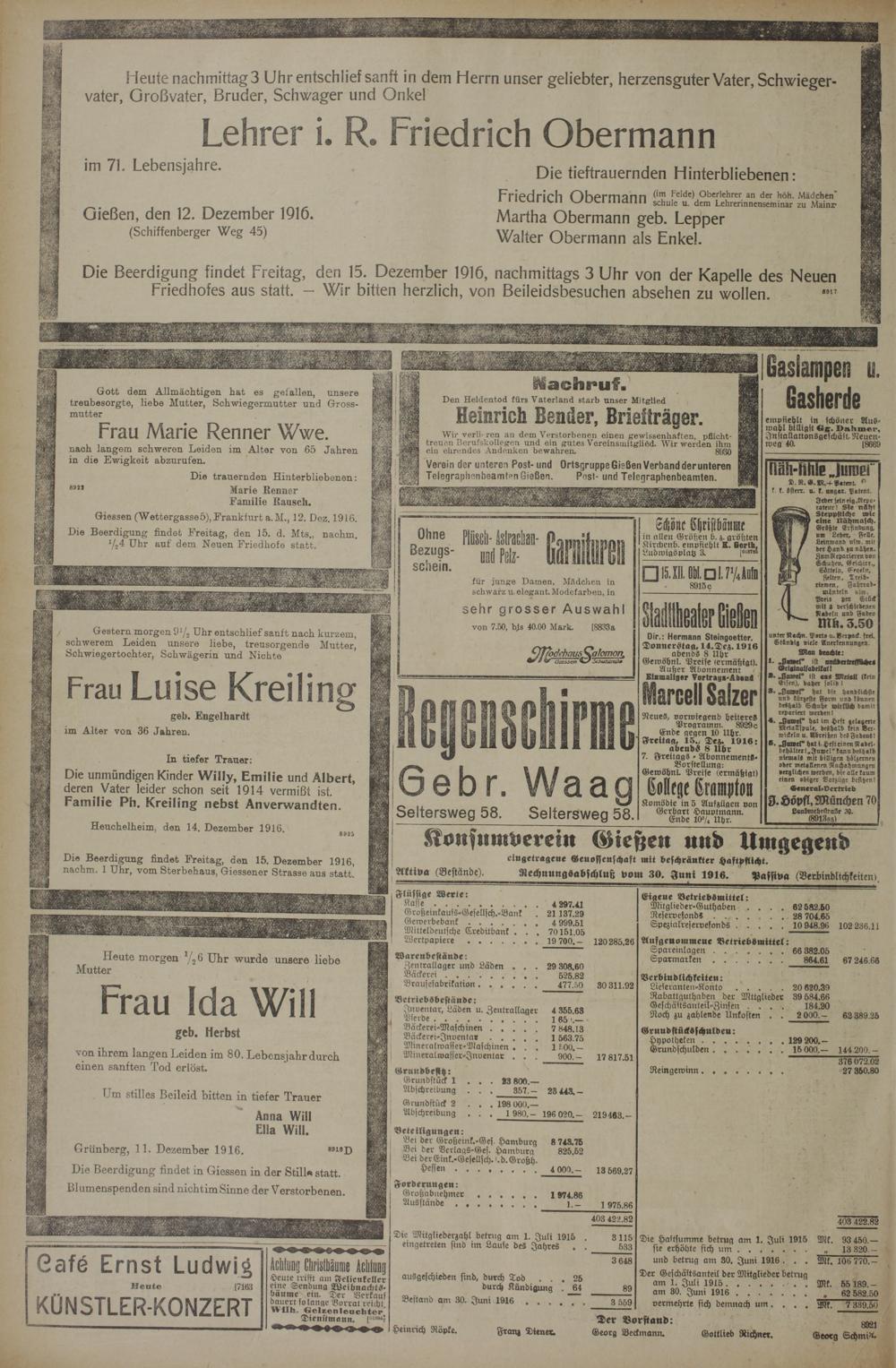 14.12.1916 Erstes Blatt