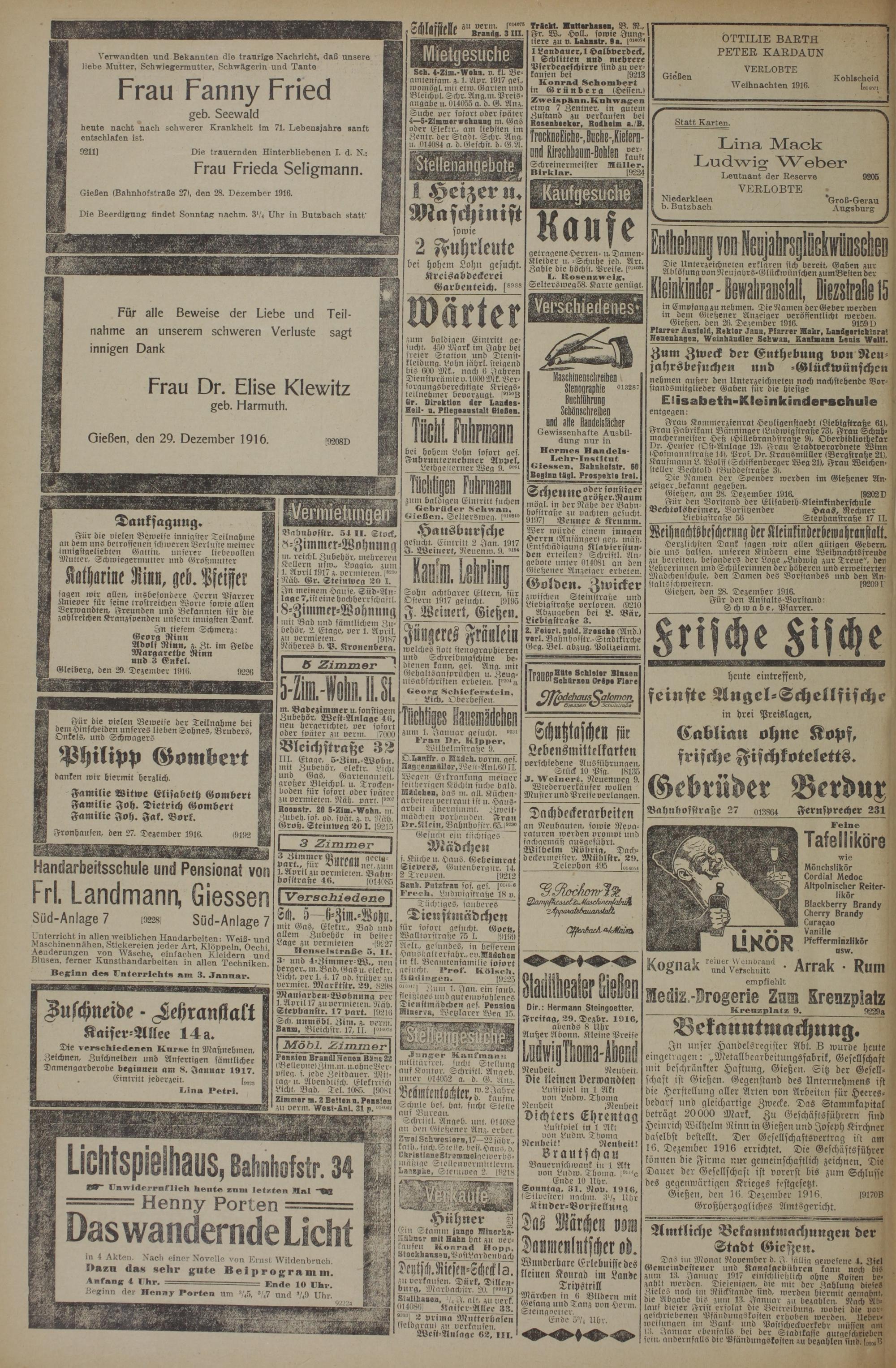 29.12.1916 Erstes Blatt
