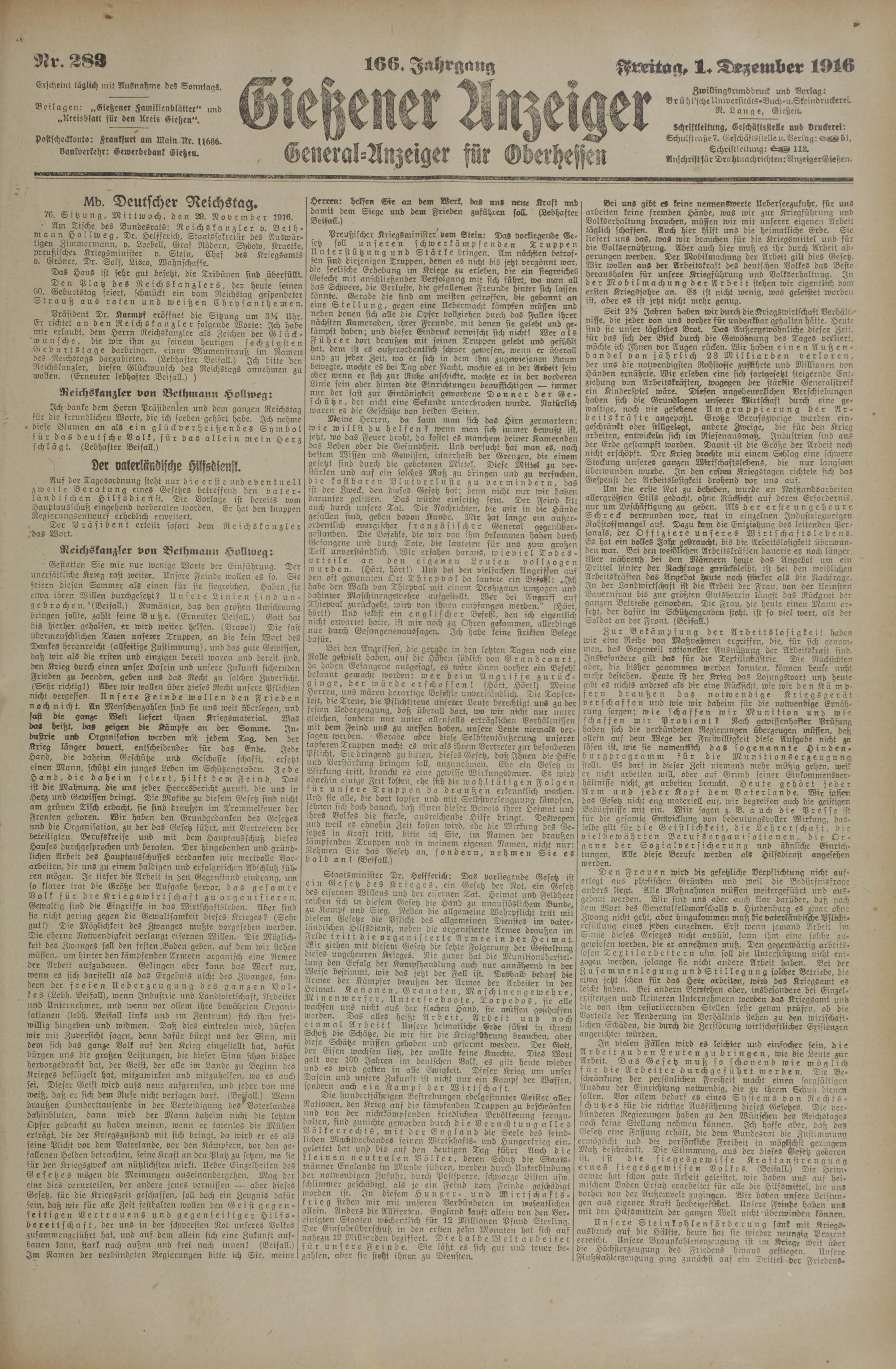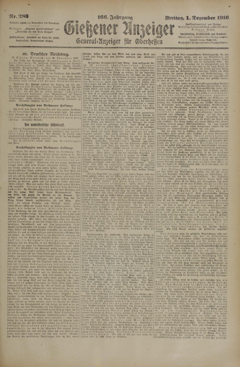 1.12.1916 Zweites Blatt