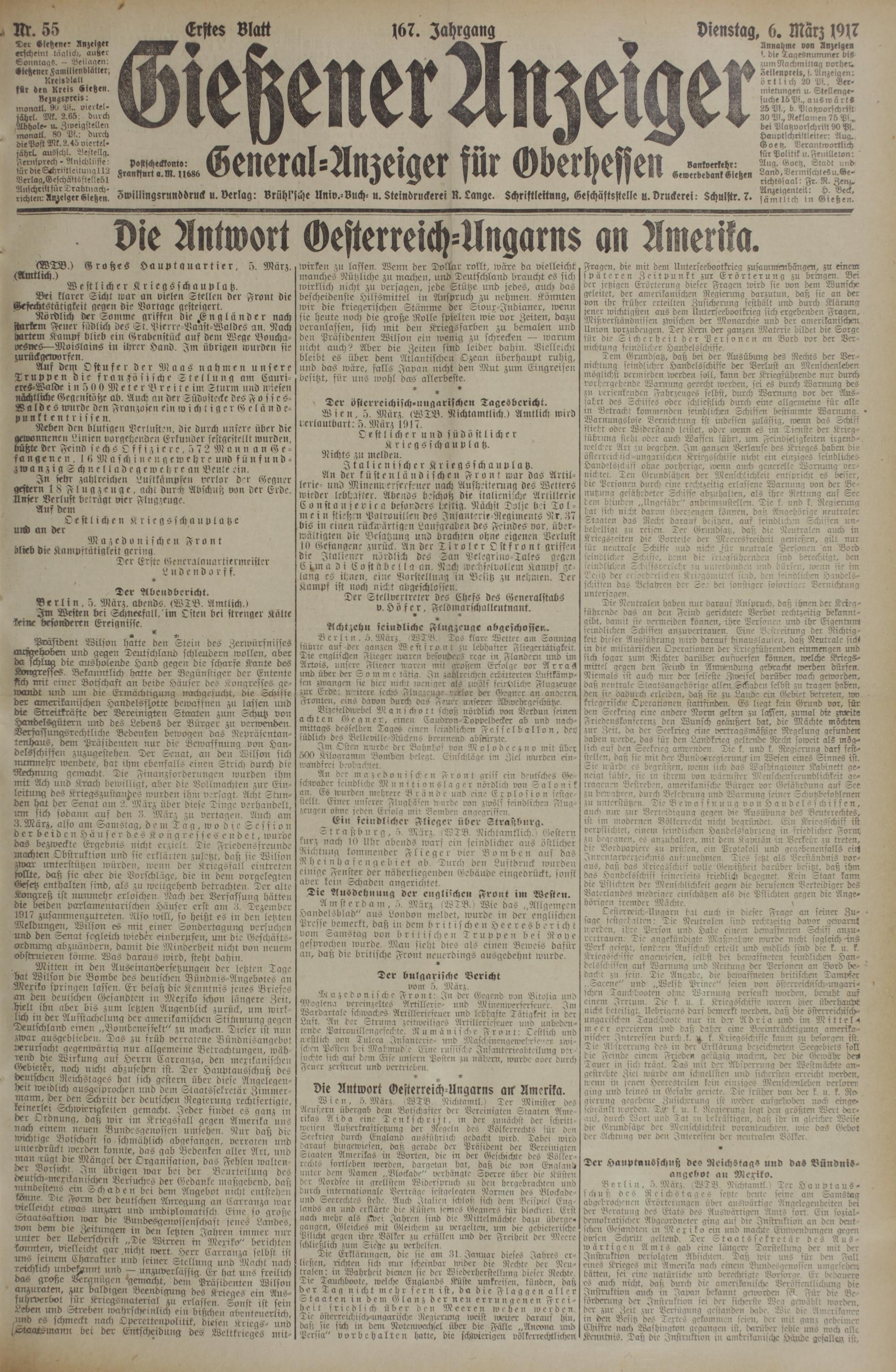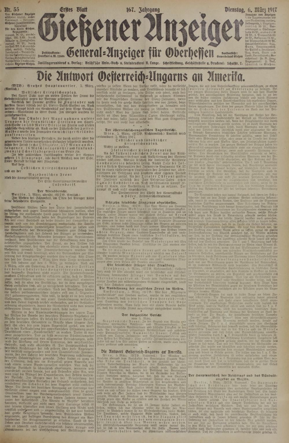 6.3.1917 Erstes Blatt