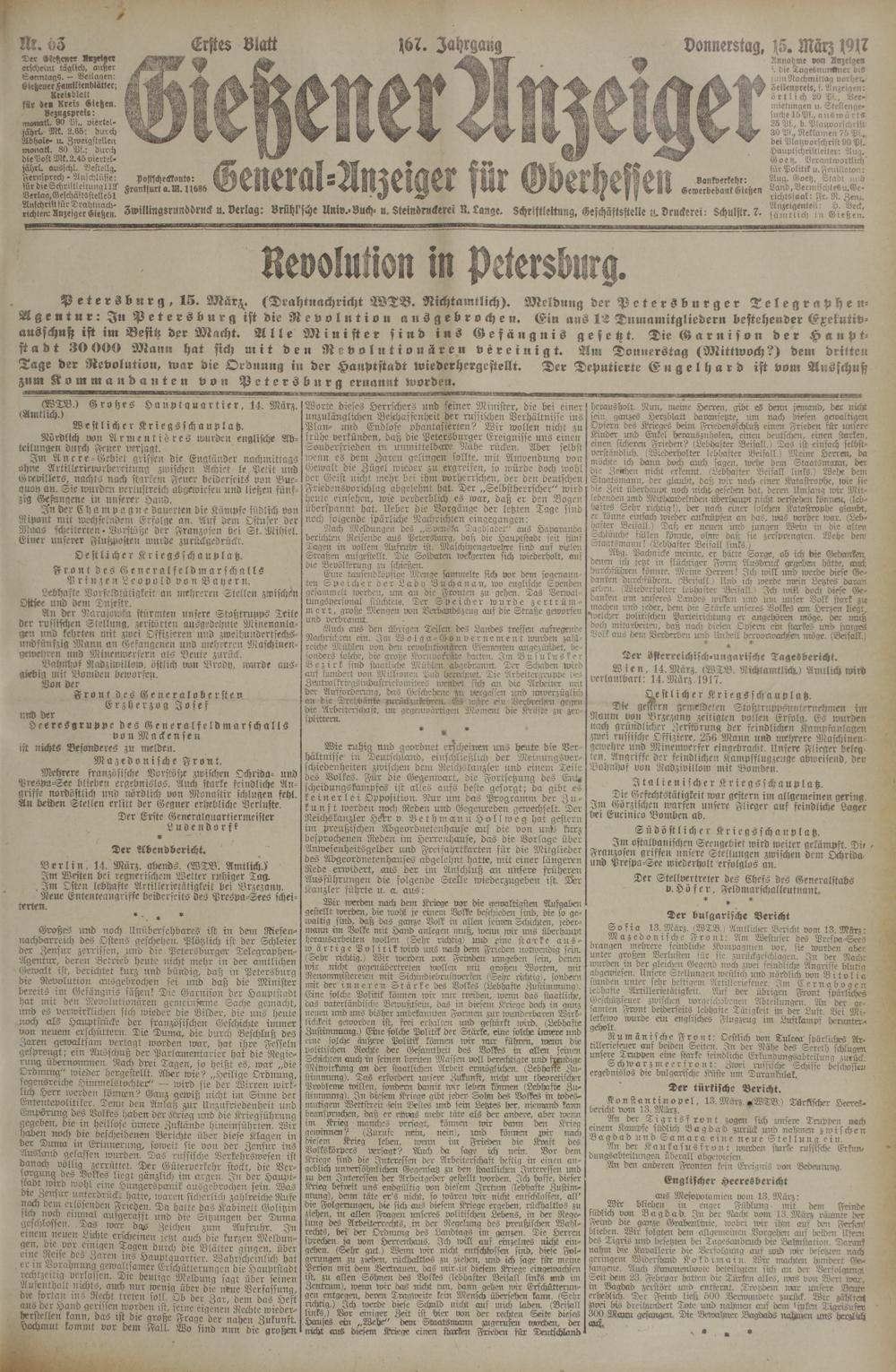 15.3.1917 Erstes Blatt