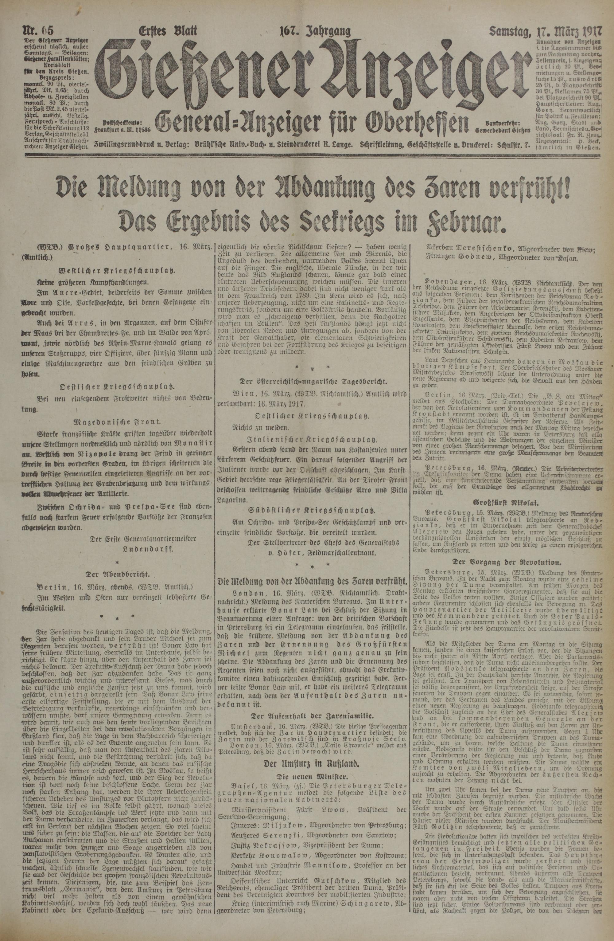 17.3.1917 Erstes Blatt