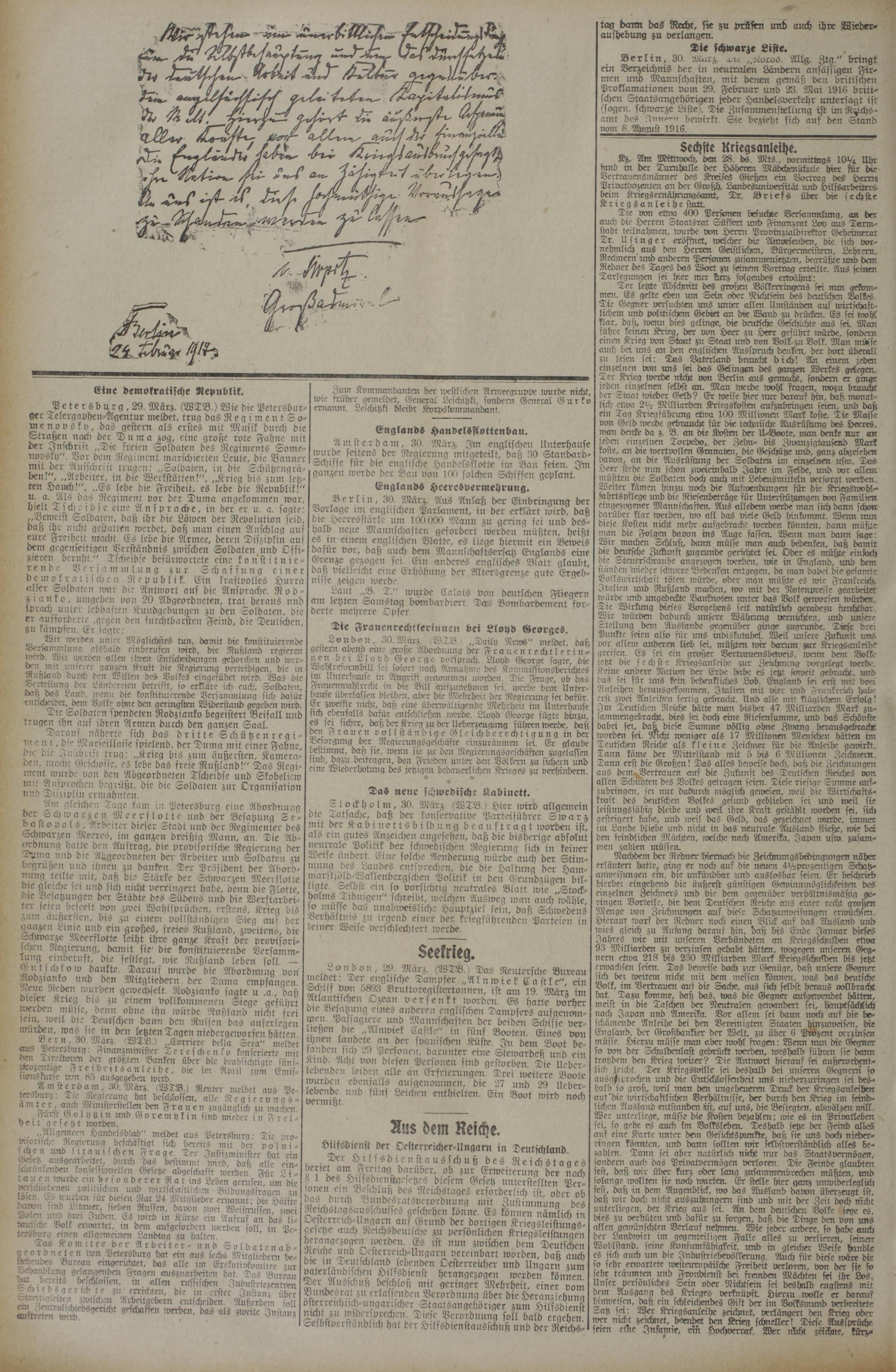 31.3.1917 Erstes Blatt