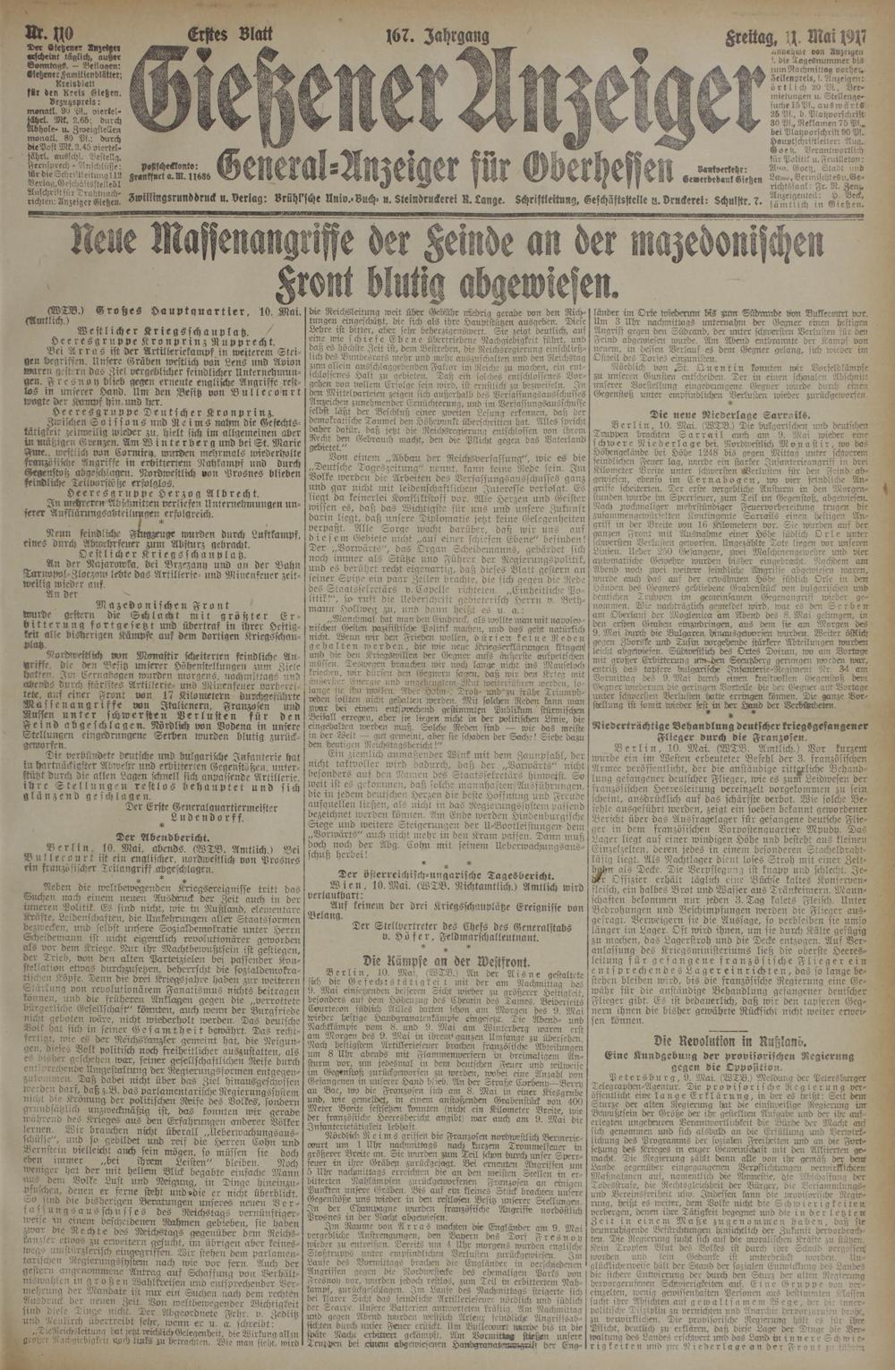 11.5.1917 Erstes Blatt