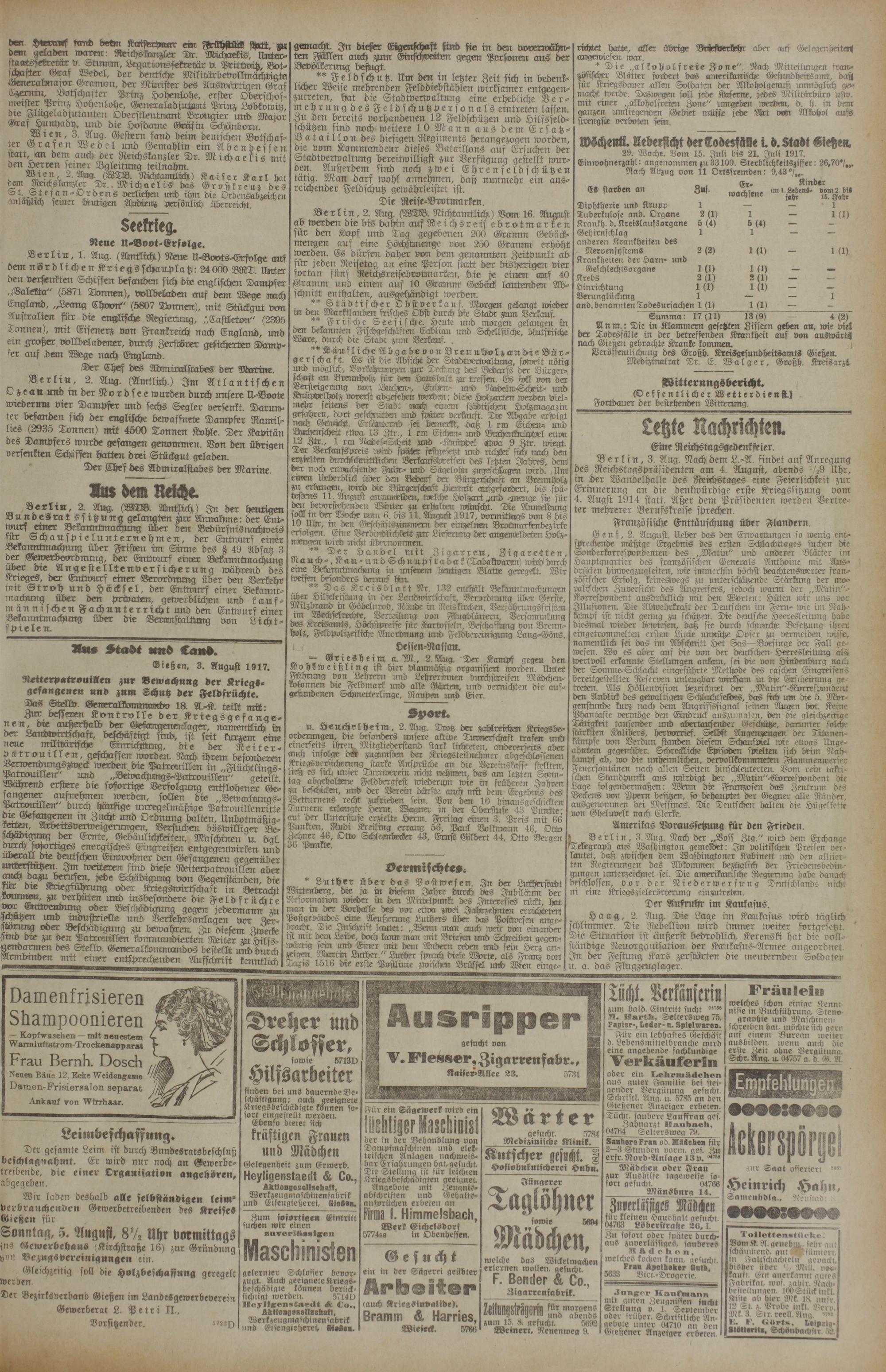 3.8.1917 Erstes Blatt