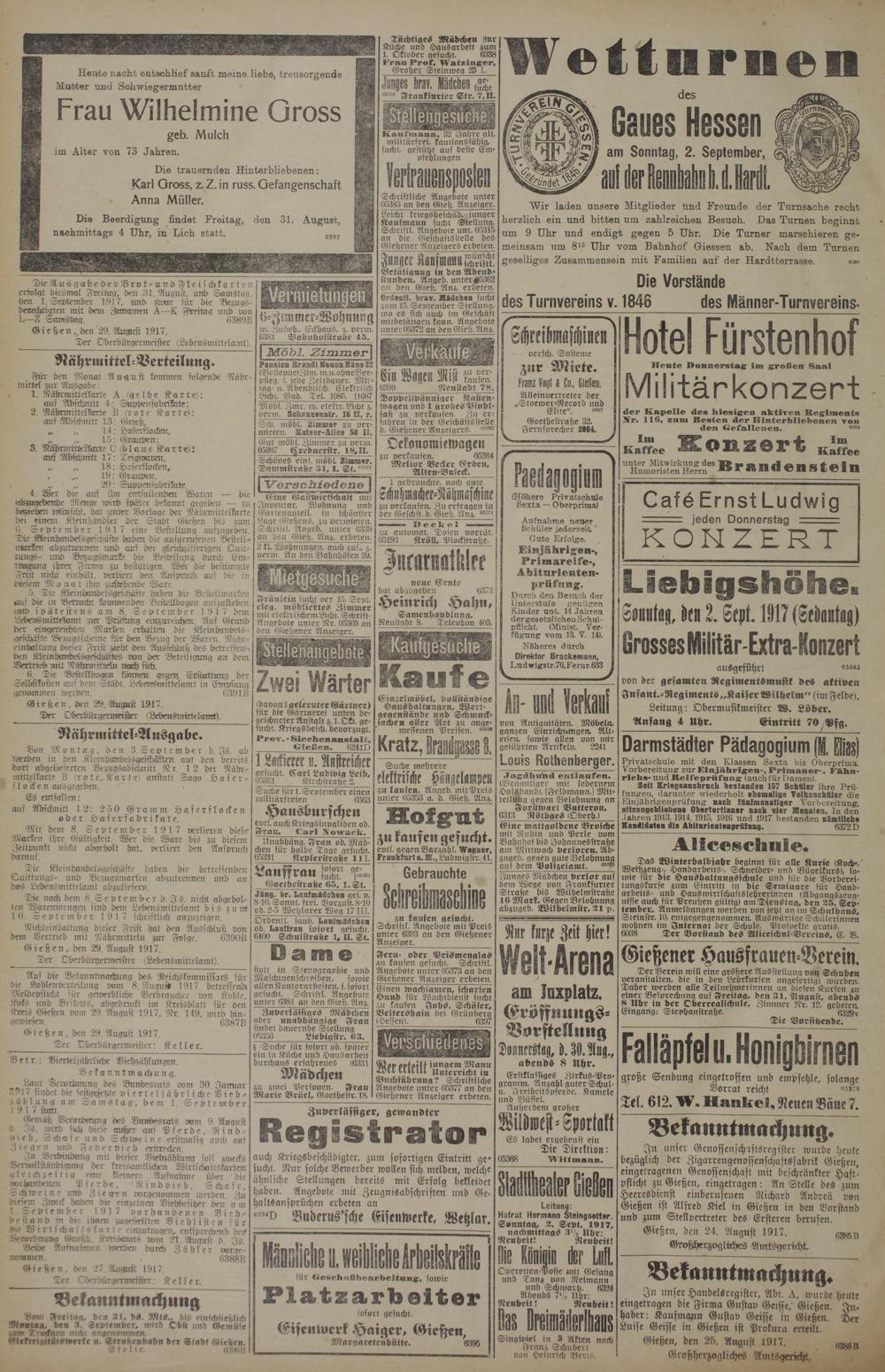 30.8.1917 Erstes Blatt