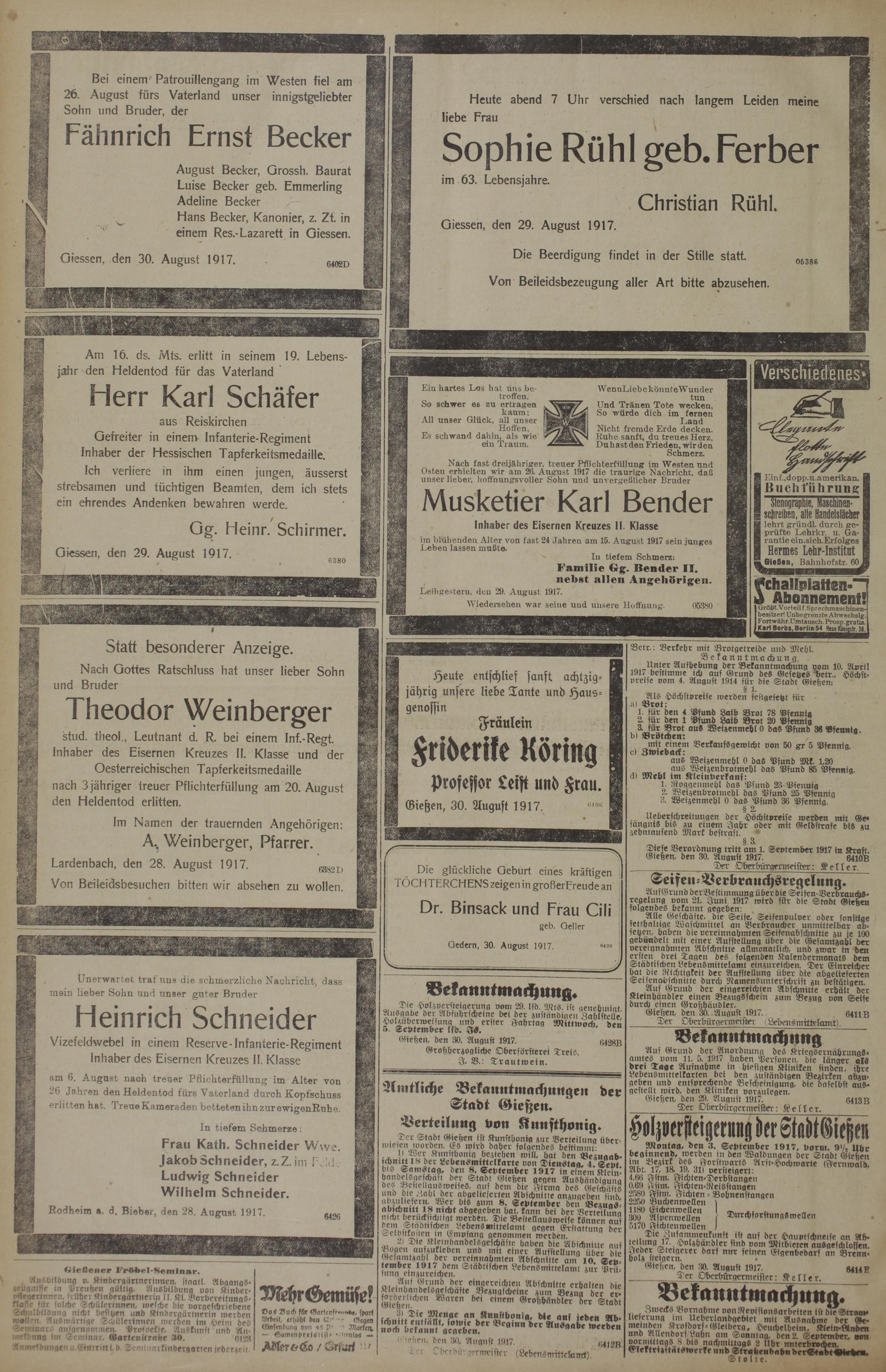 31.8.1917 Erstes Blatt