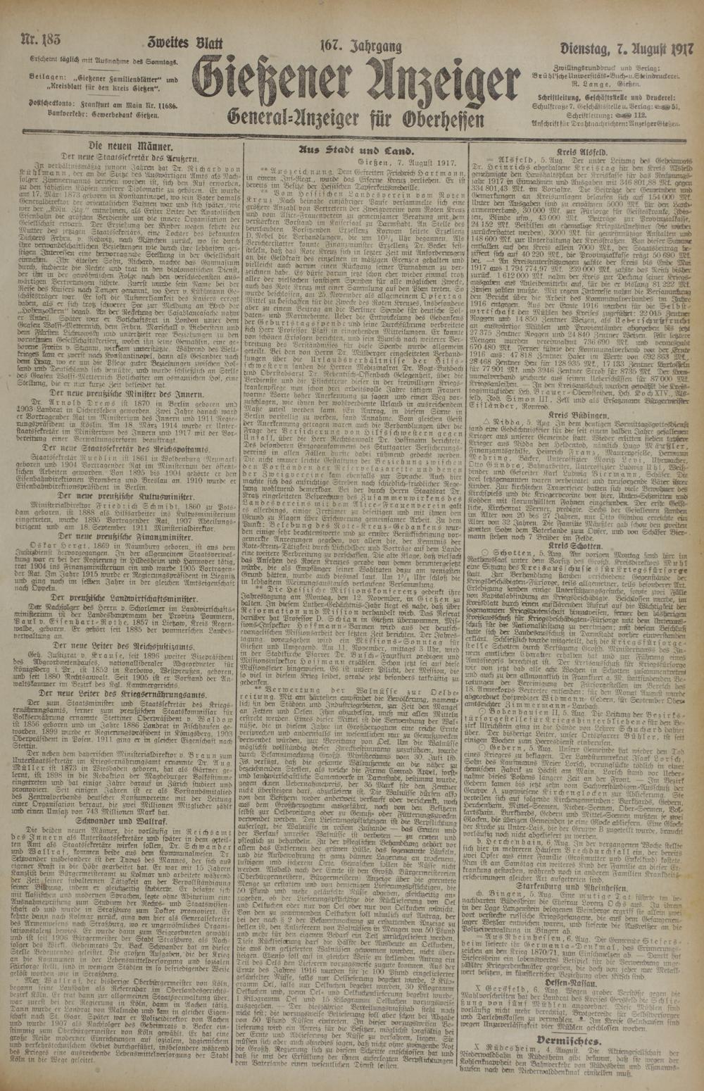 Gießener Anzeiger. 1868-1943
