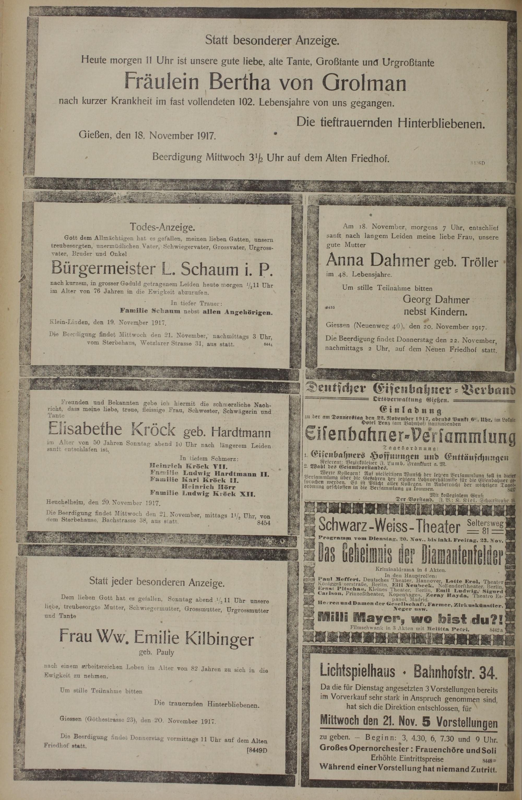 20.11.1917 Erstes Blatt