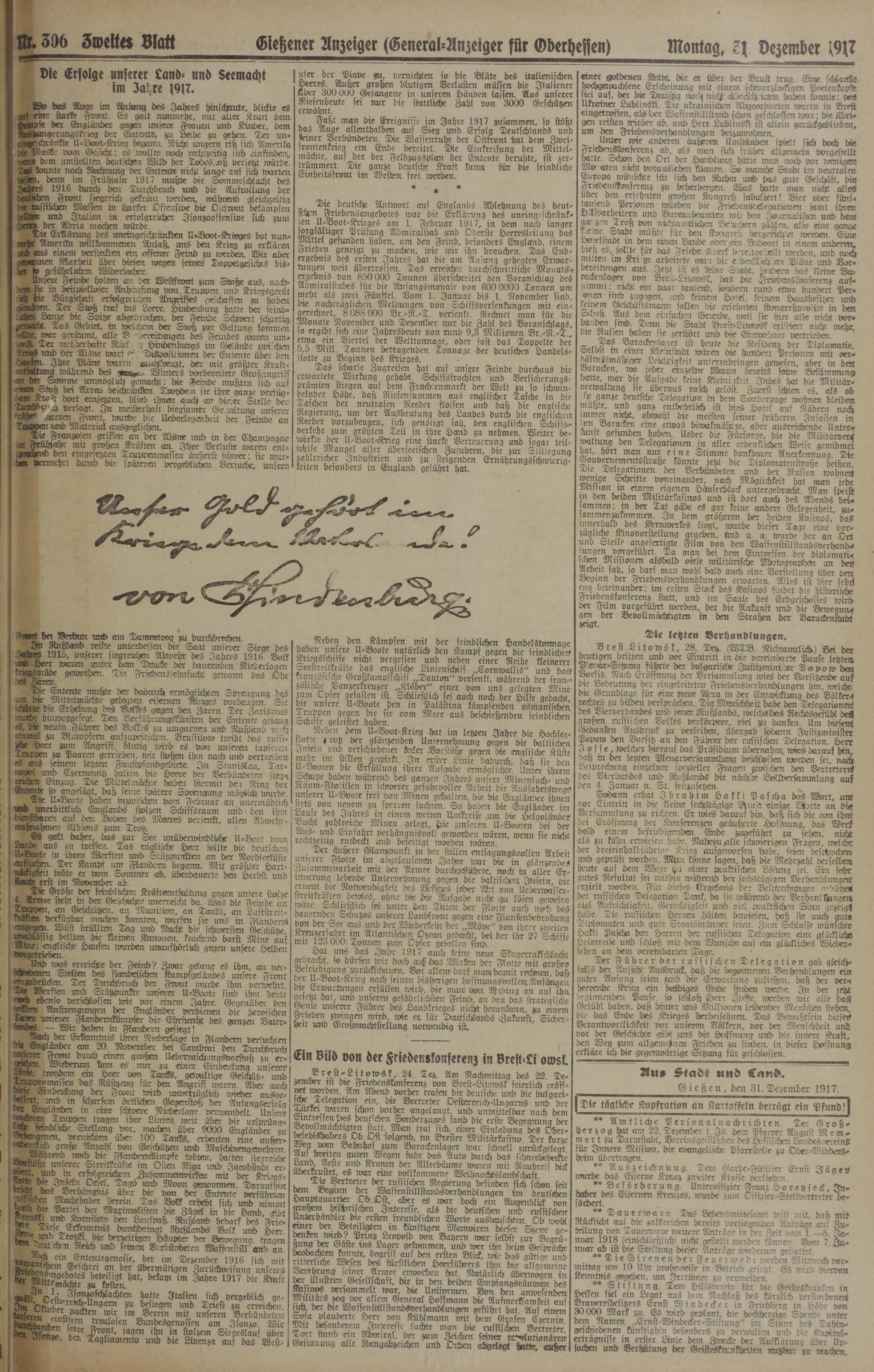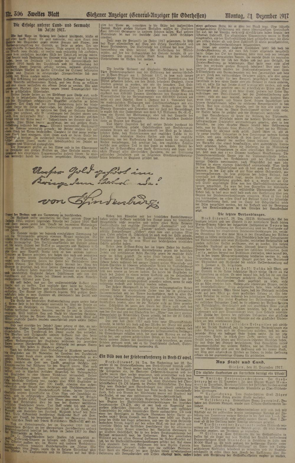 31.12.1917 Erstes Blatt