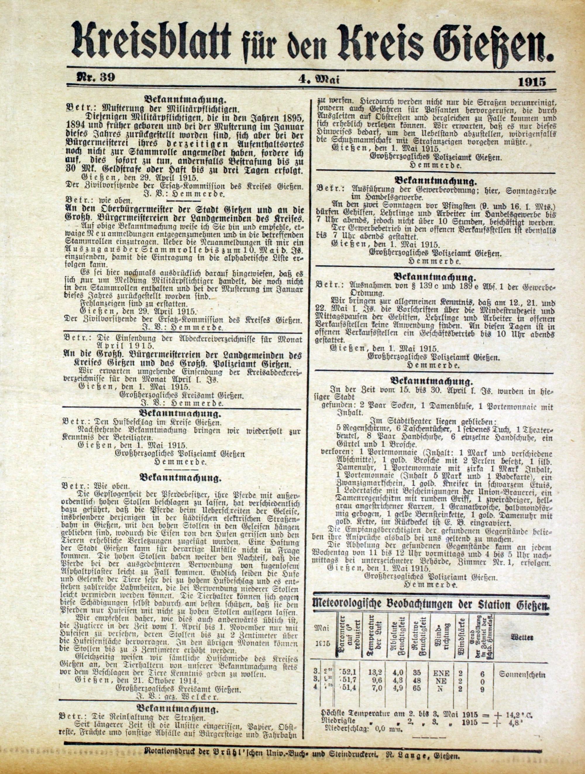 Kreisblatt für den Kreis Gießen