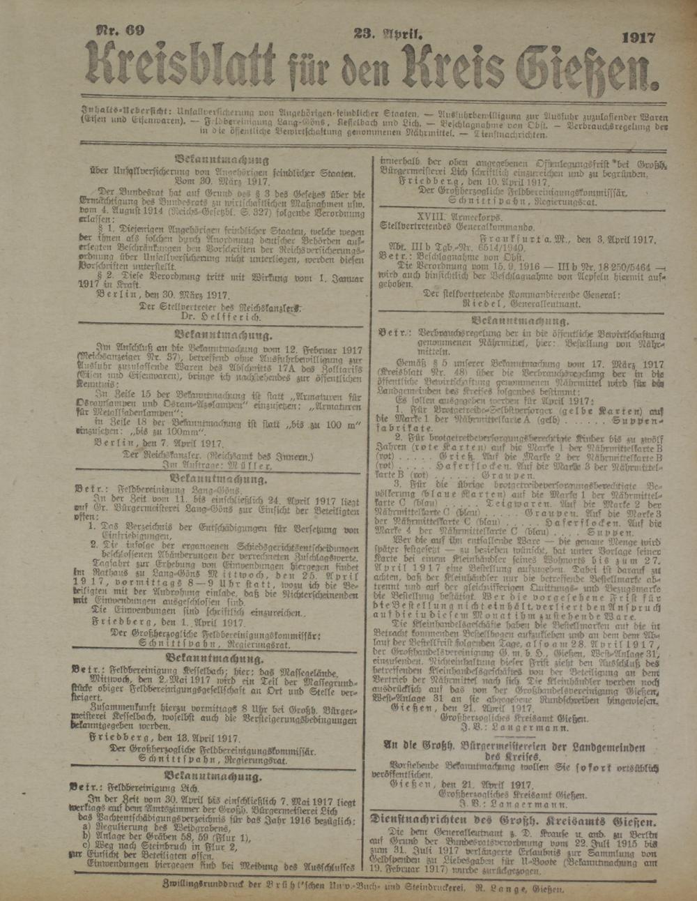 Kreisblatt für den Kreis Gießen