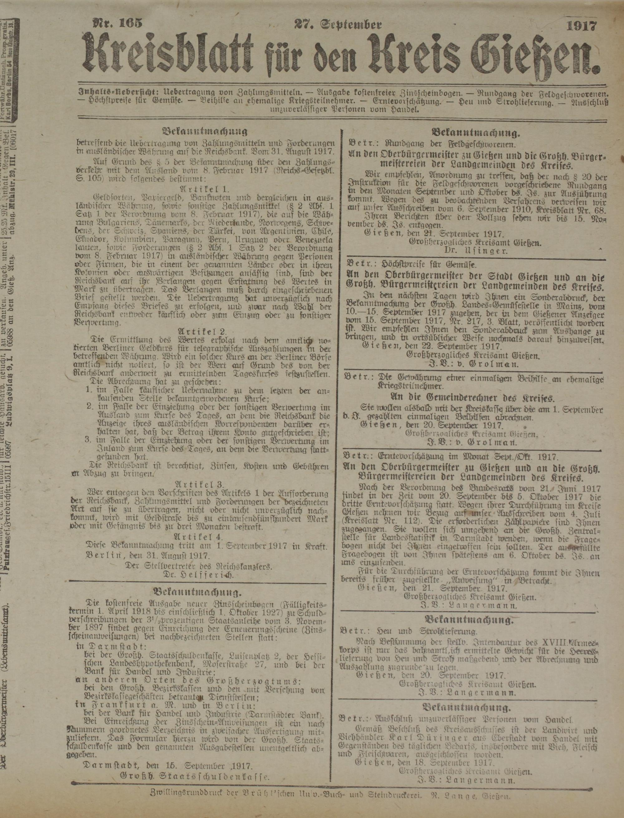 Kreisblatt für den Kreis Gießen