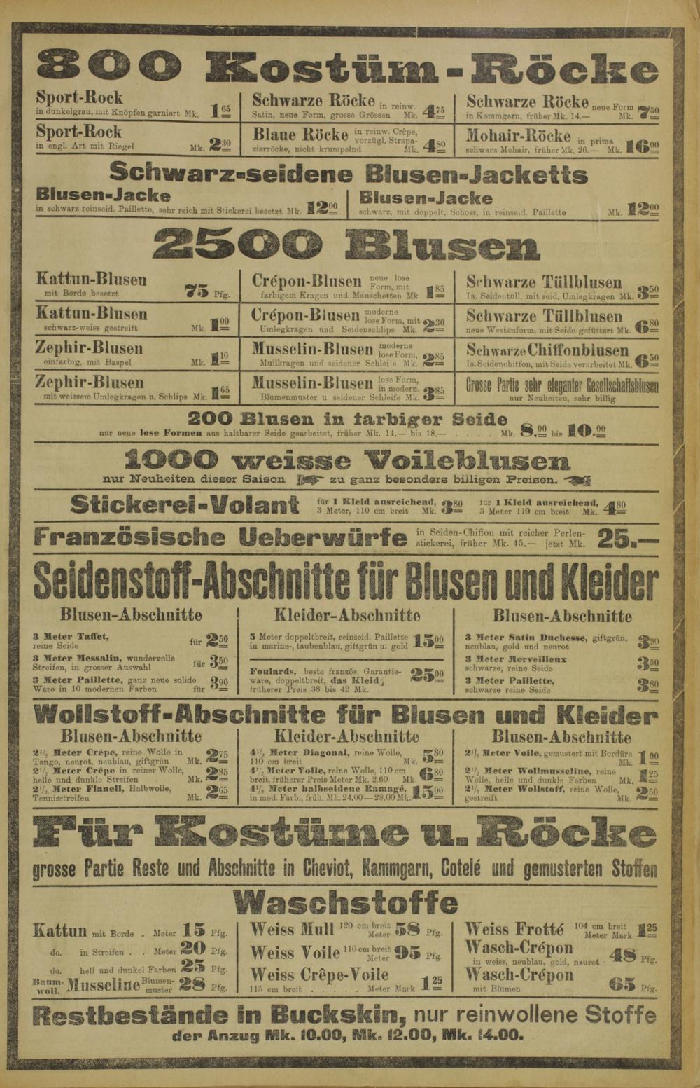 verfügbare Breiten