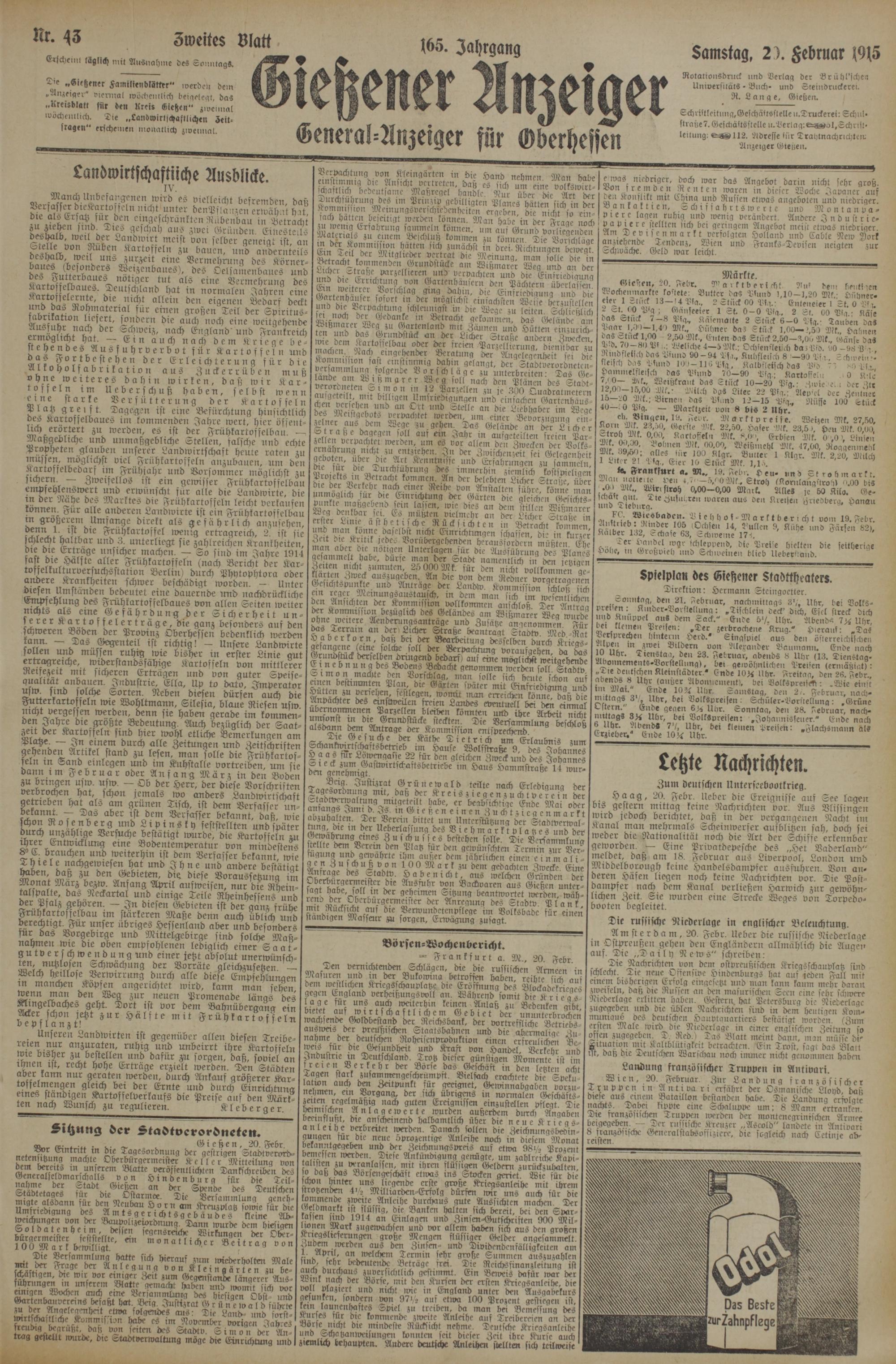 43 (20.2.1915) Zweites Blatt