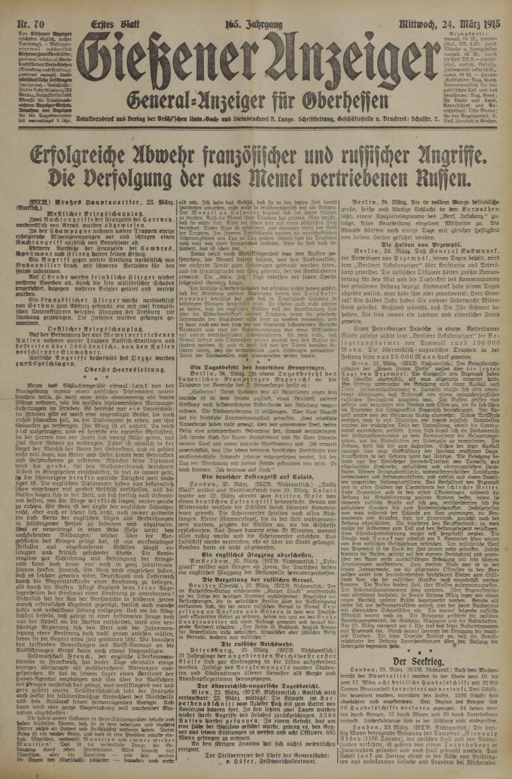 70 (24.3.1915) Erstes Blatt