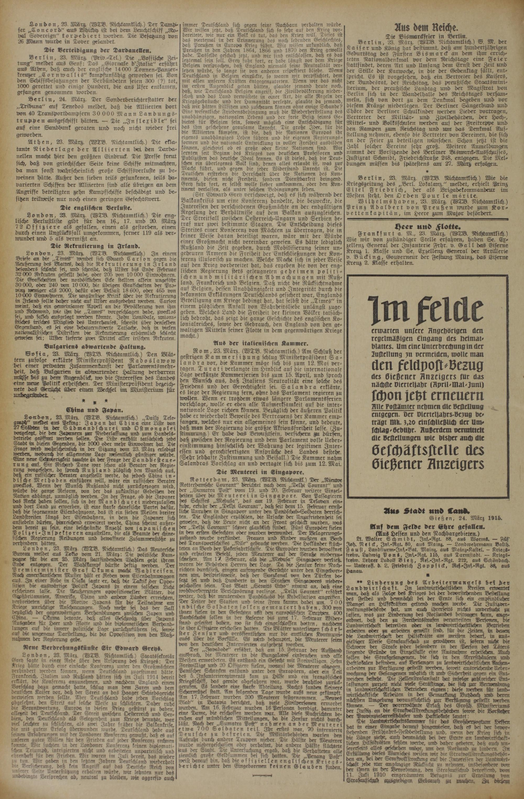 70 (24.3.1915) Erstes Blatt