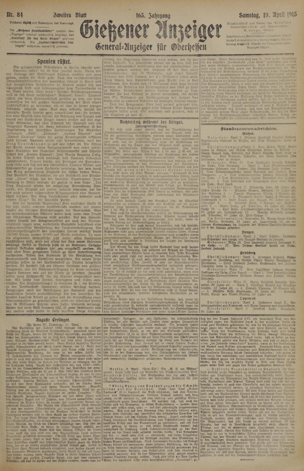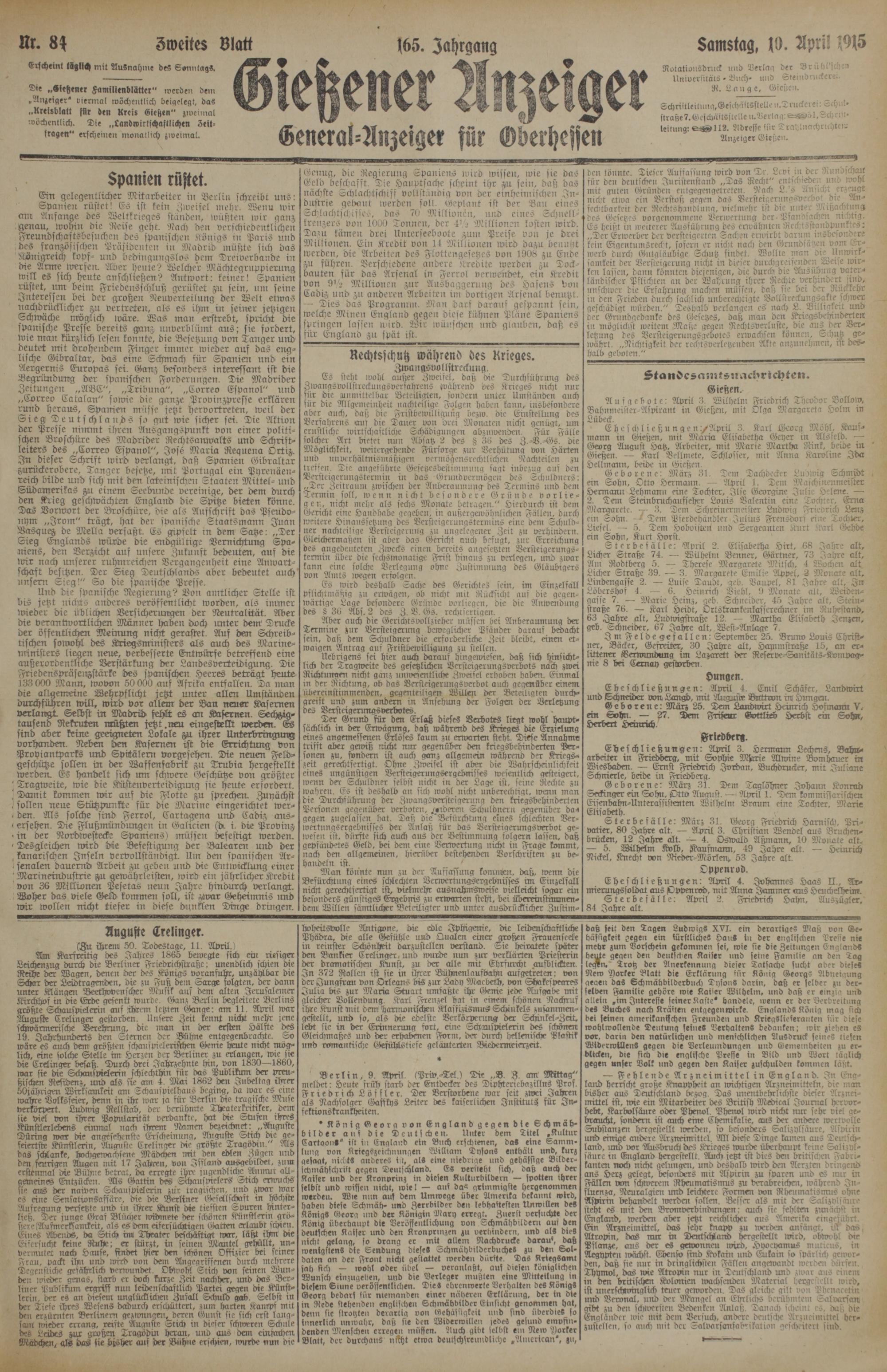 84 (10.4.1915) Zweites Blatt