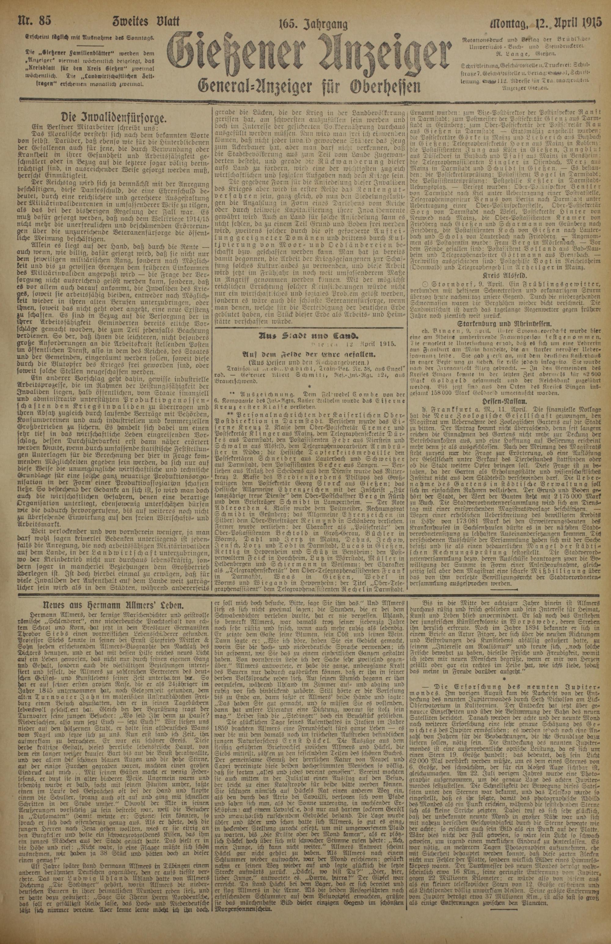 85 (12.4.1915) Zweites Blatt