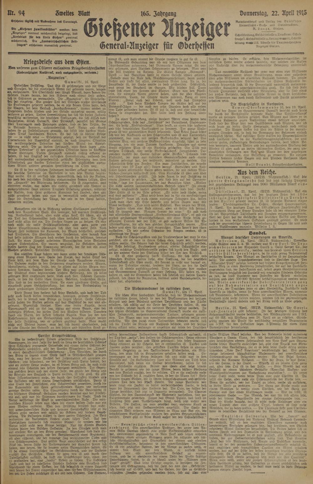 94 (22.4.1915) Zweites Blatt