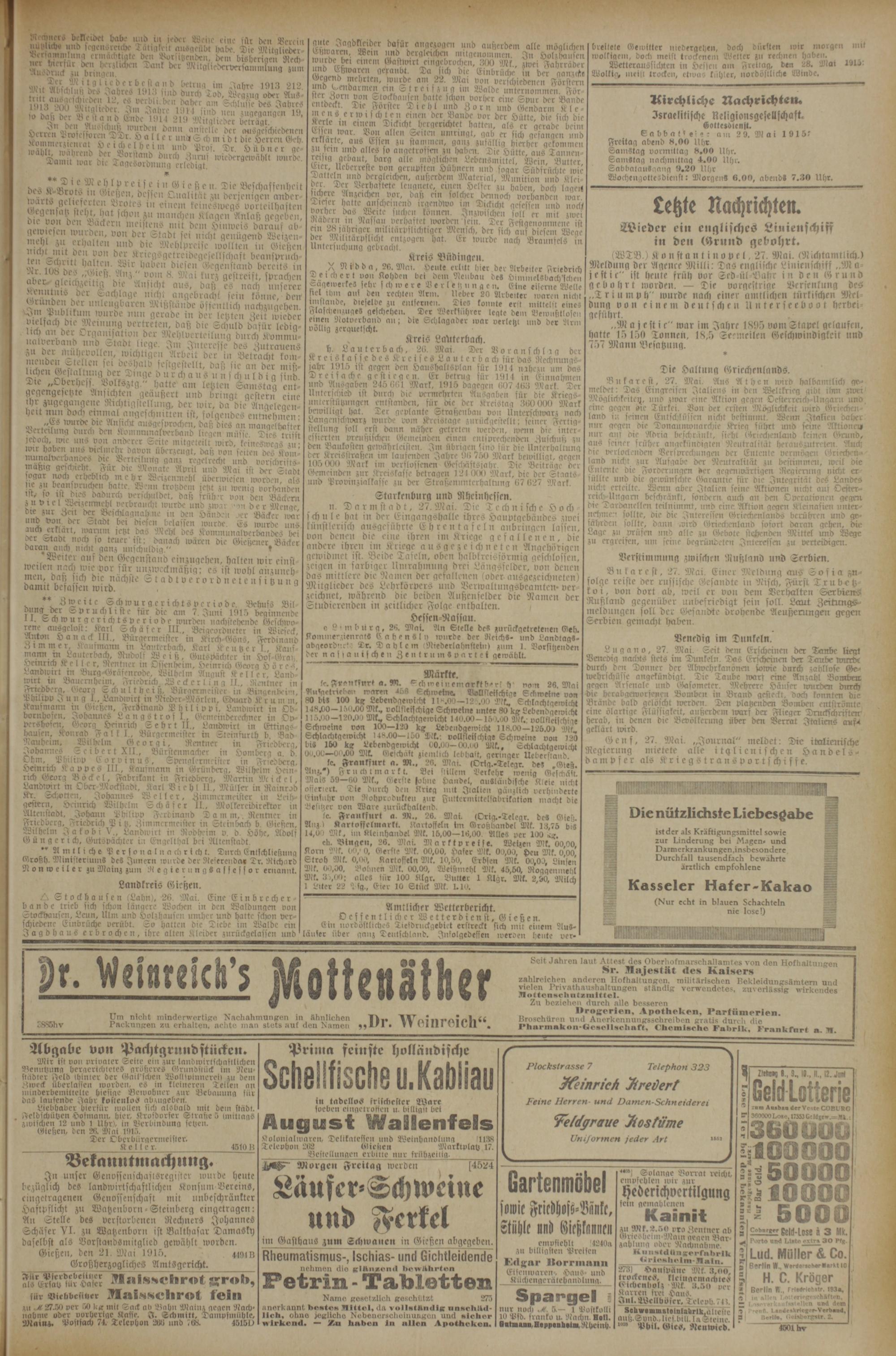 122 (27.5.1915) Erstes Blatt