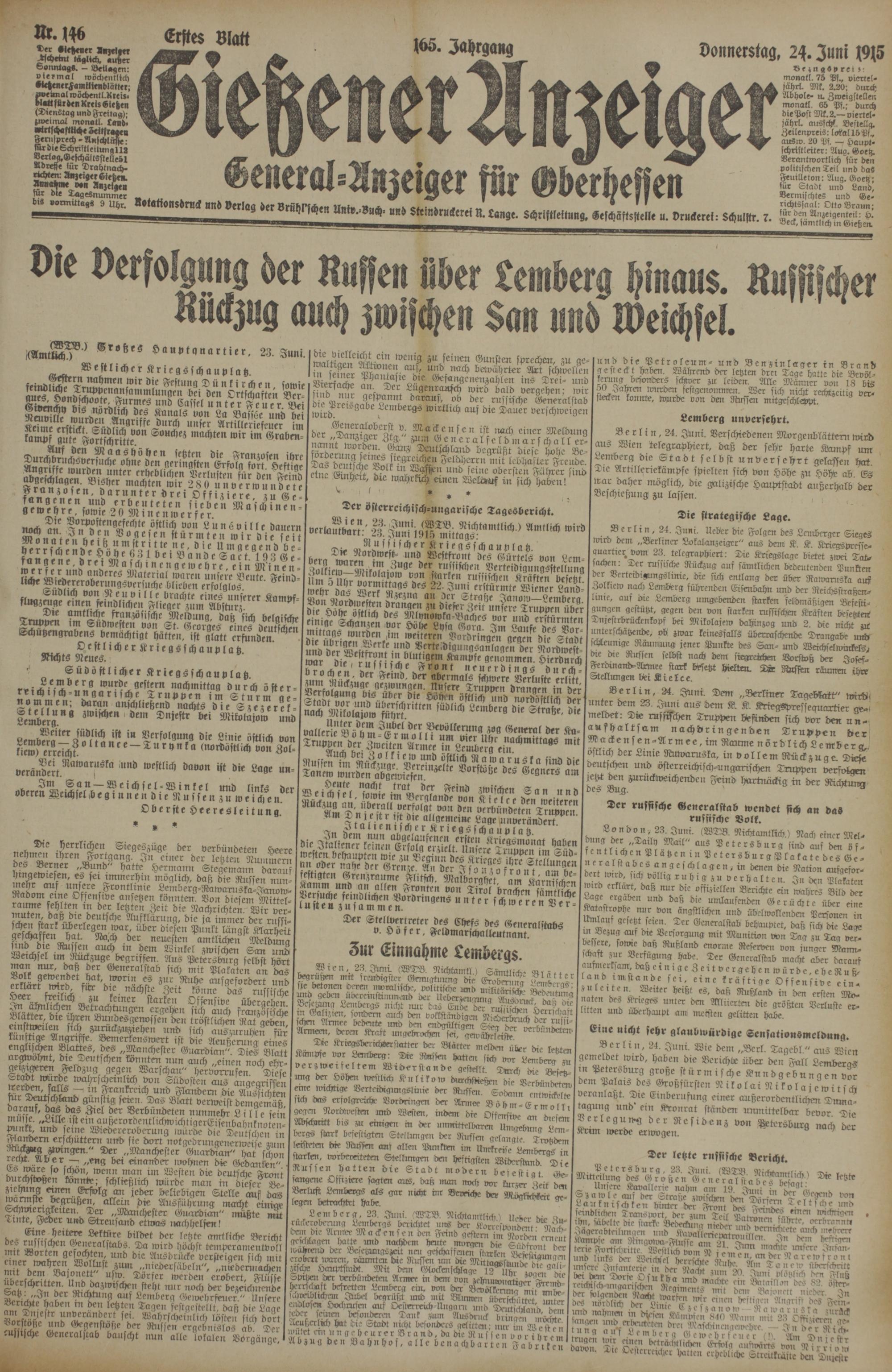 146 (24.6.1915) Erstes Blatt