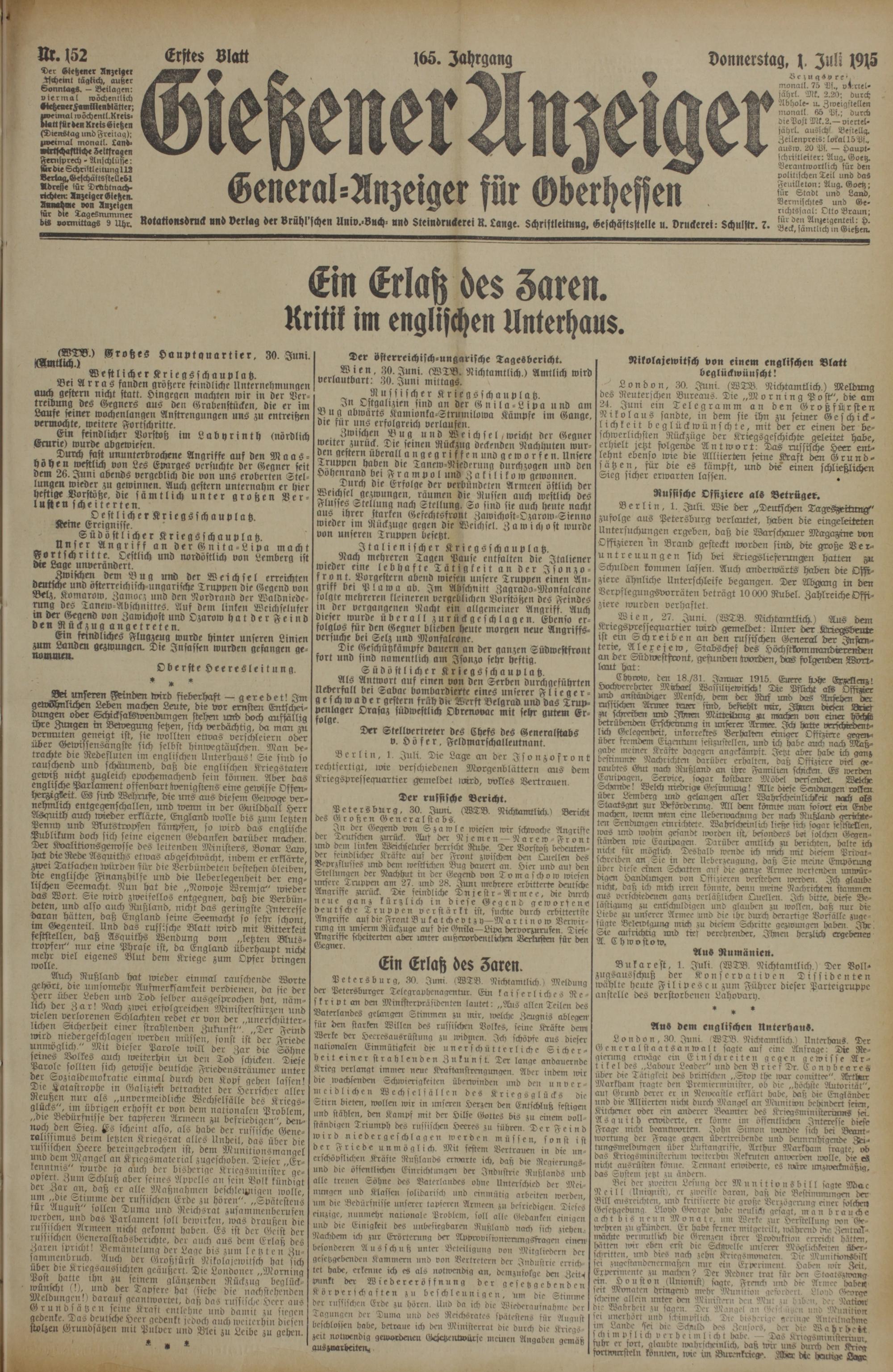 152 (1.7.1915) Erstes Blatt