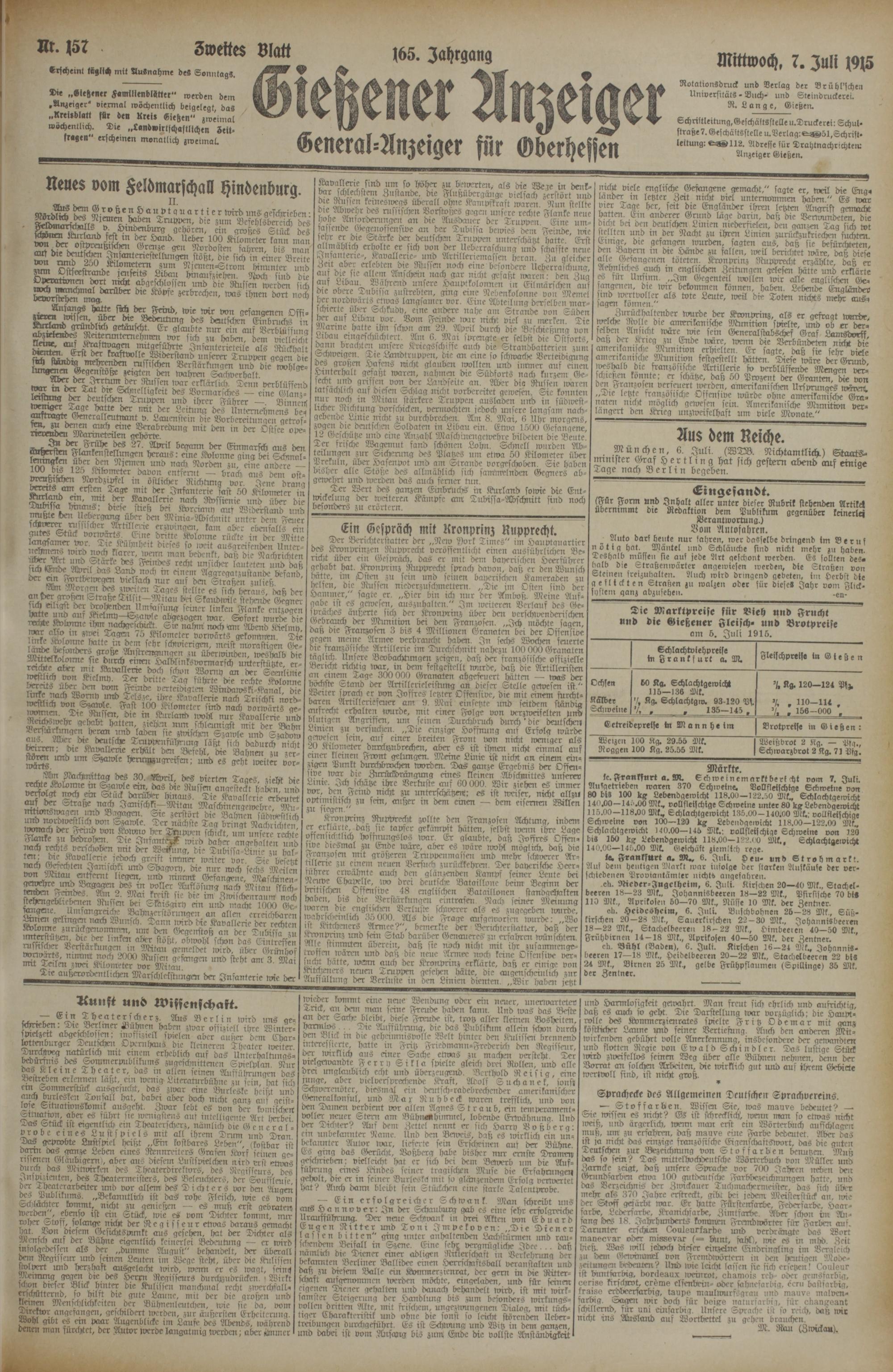 157 (7.7.1915) Zweites Blatt