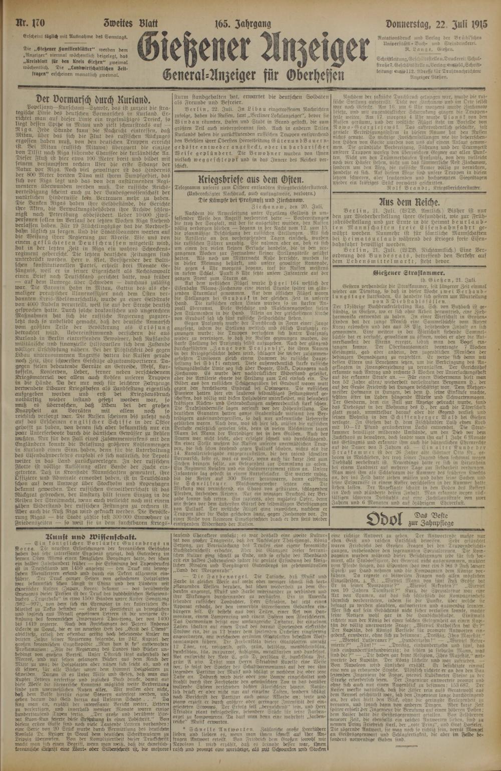 (22.7.1915) 170. Zweites Blatt
