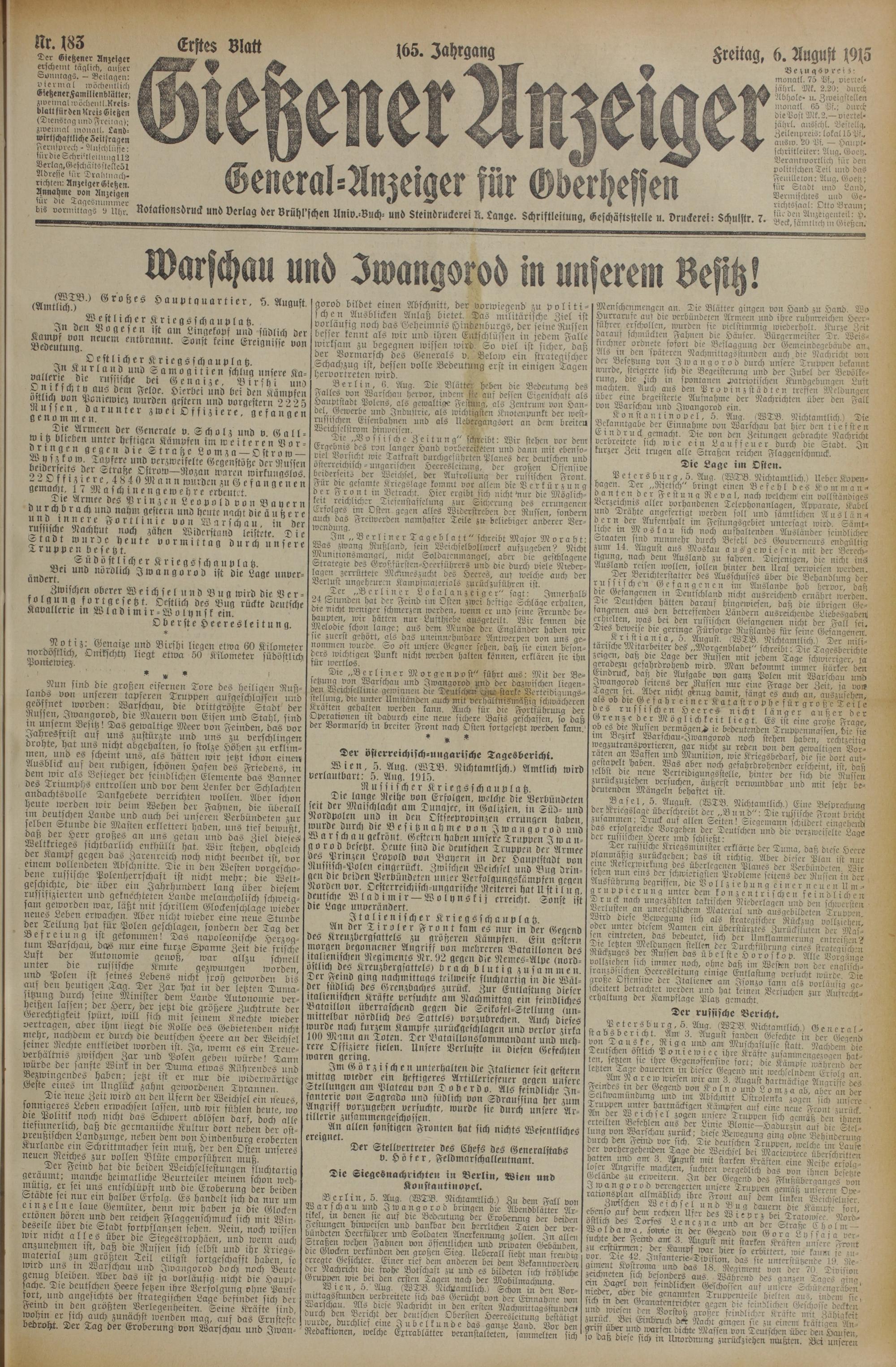 183 (6.8.1915) Erstes Blatt