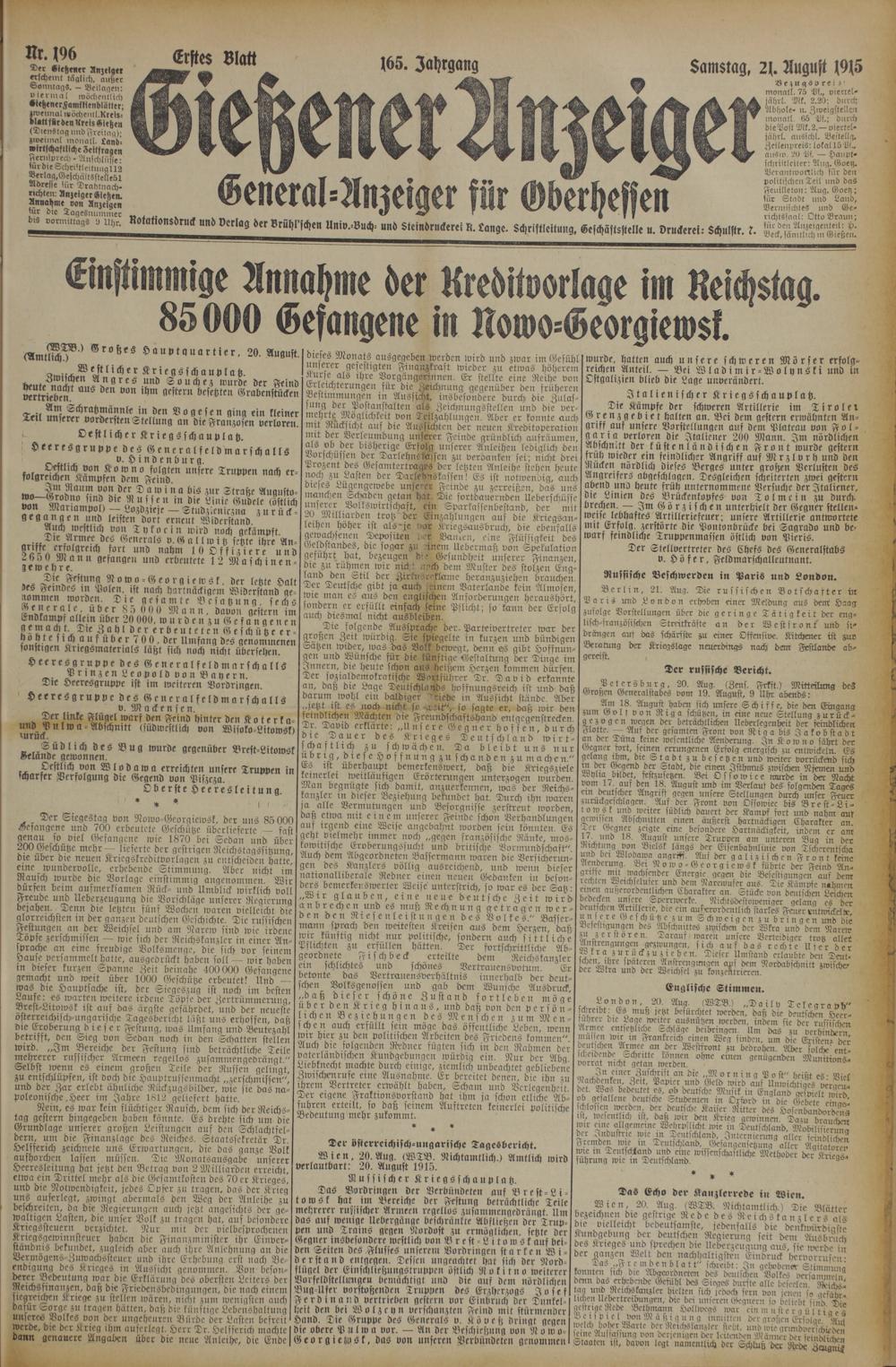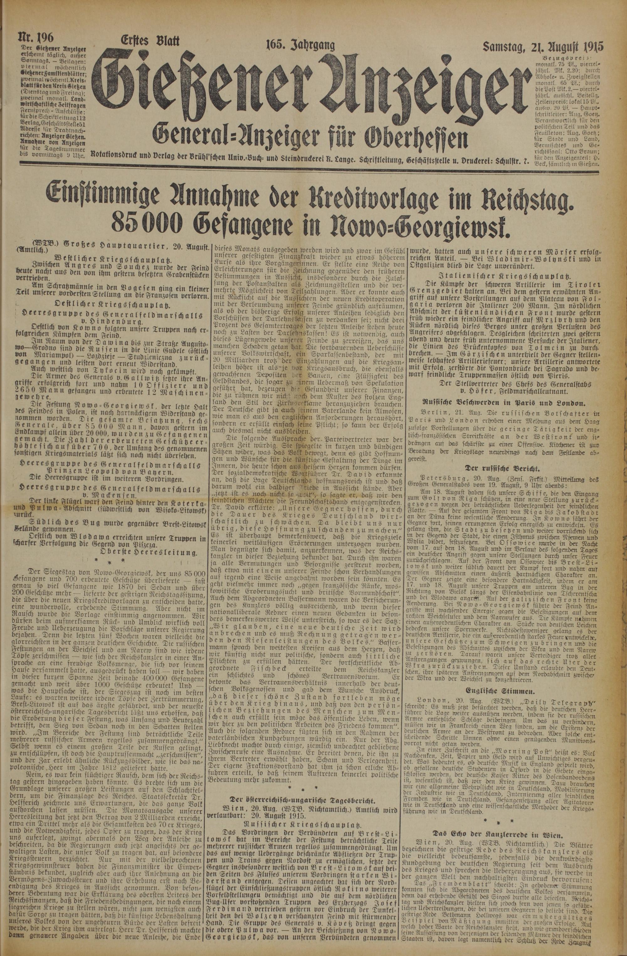 196 (21.8.1915) Erstes Blatt