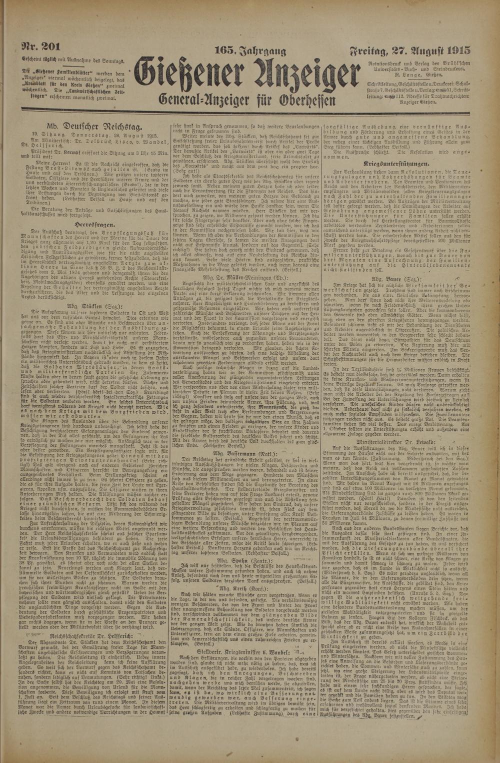 Gießener Anzeiger. 1868-1943