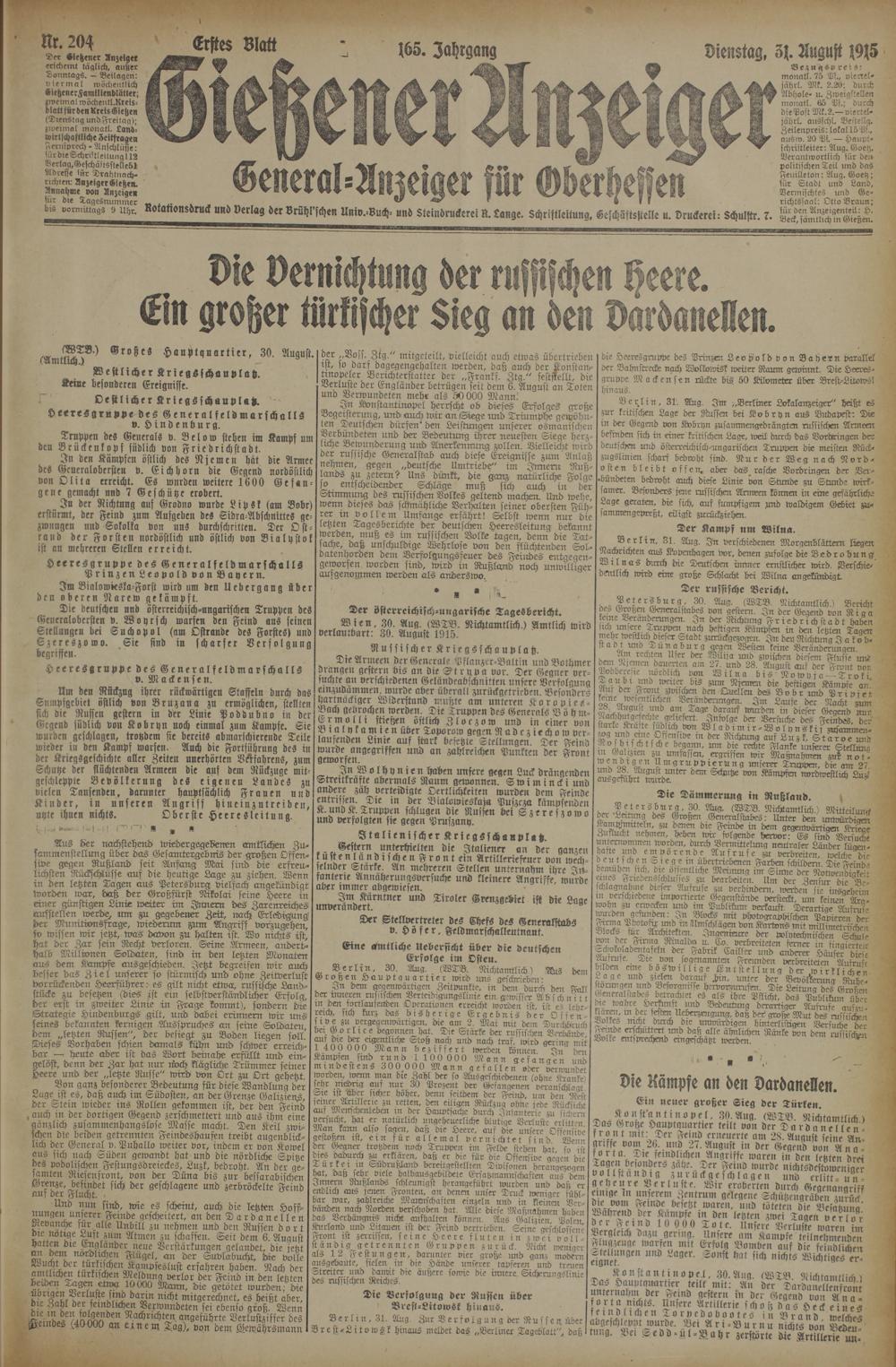 204 (31.8.1915) Erstes Blatt