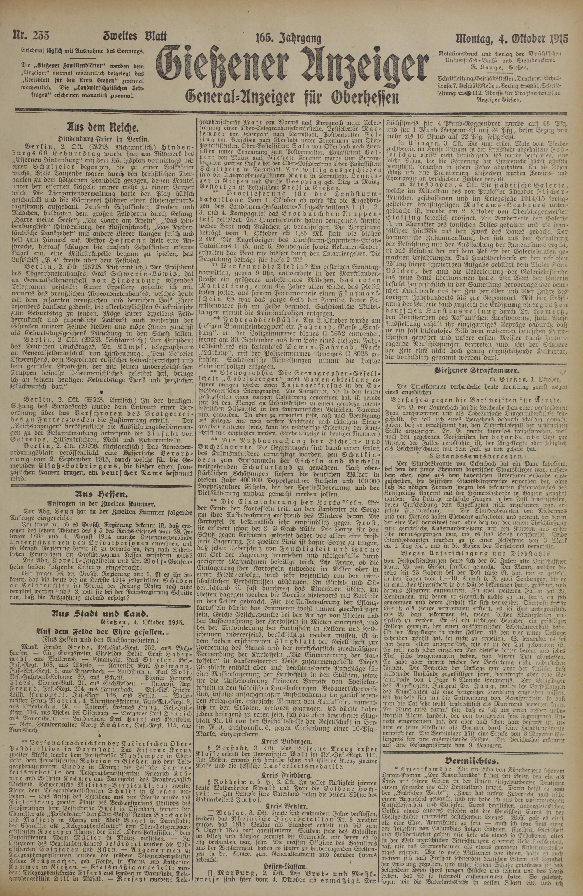 233 (4.10.1915) Zweites Blatt