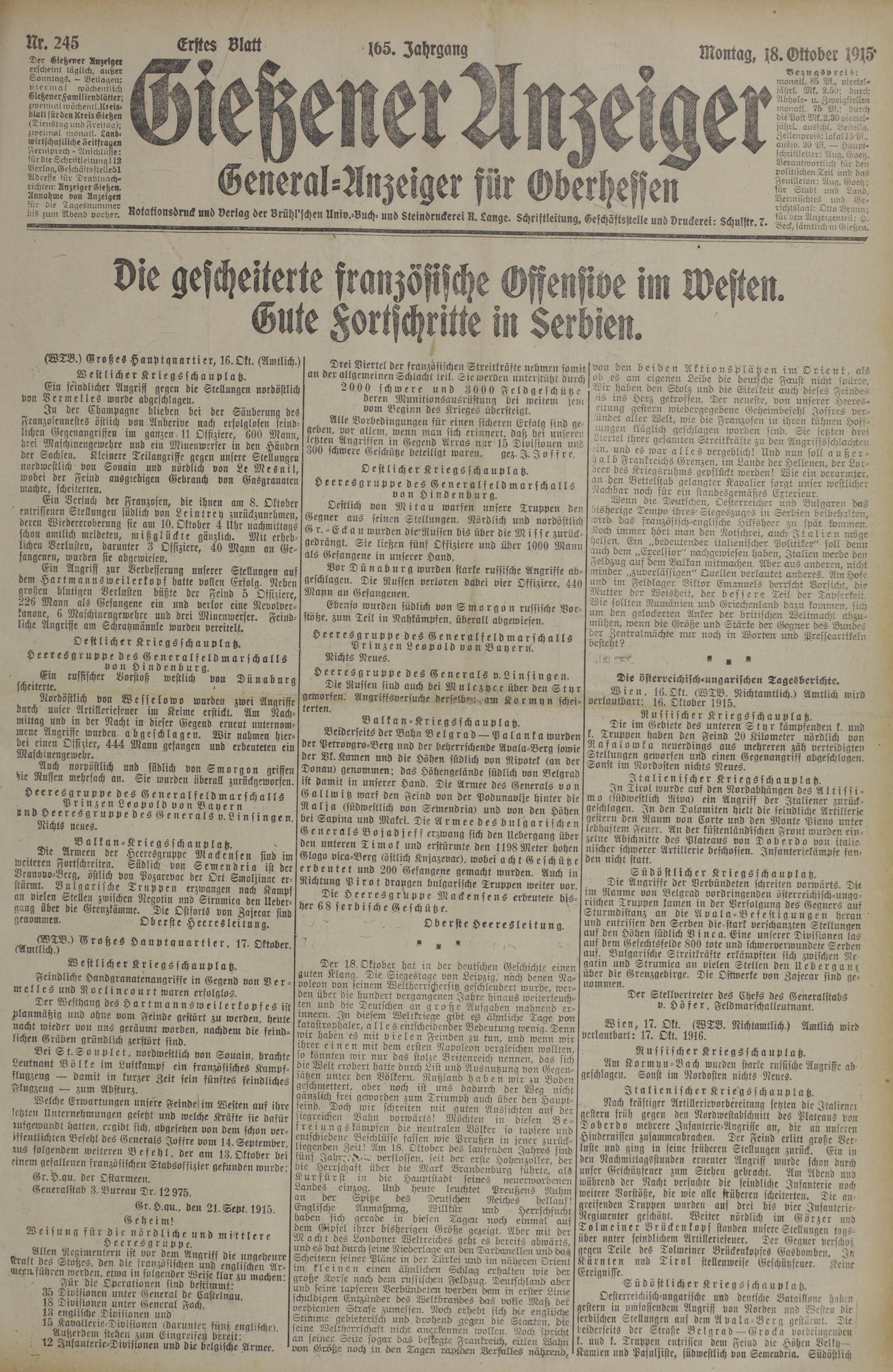 245 (18.10.1915) Erstes Blatt