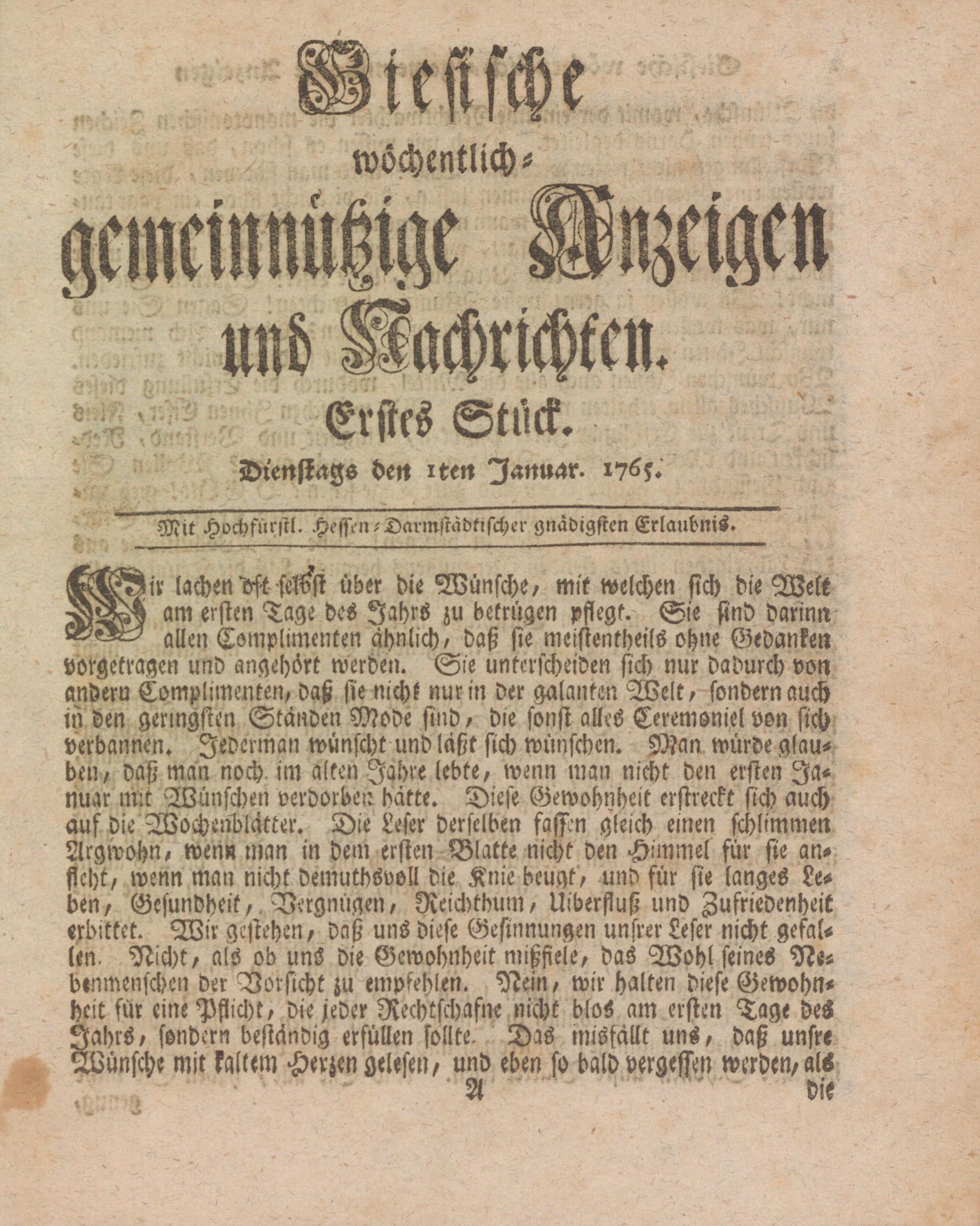 Giessische wöchentliche gemeinnützige Anzeigen und Nachrichten. 1764-1770