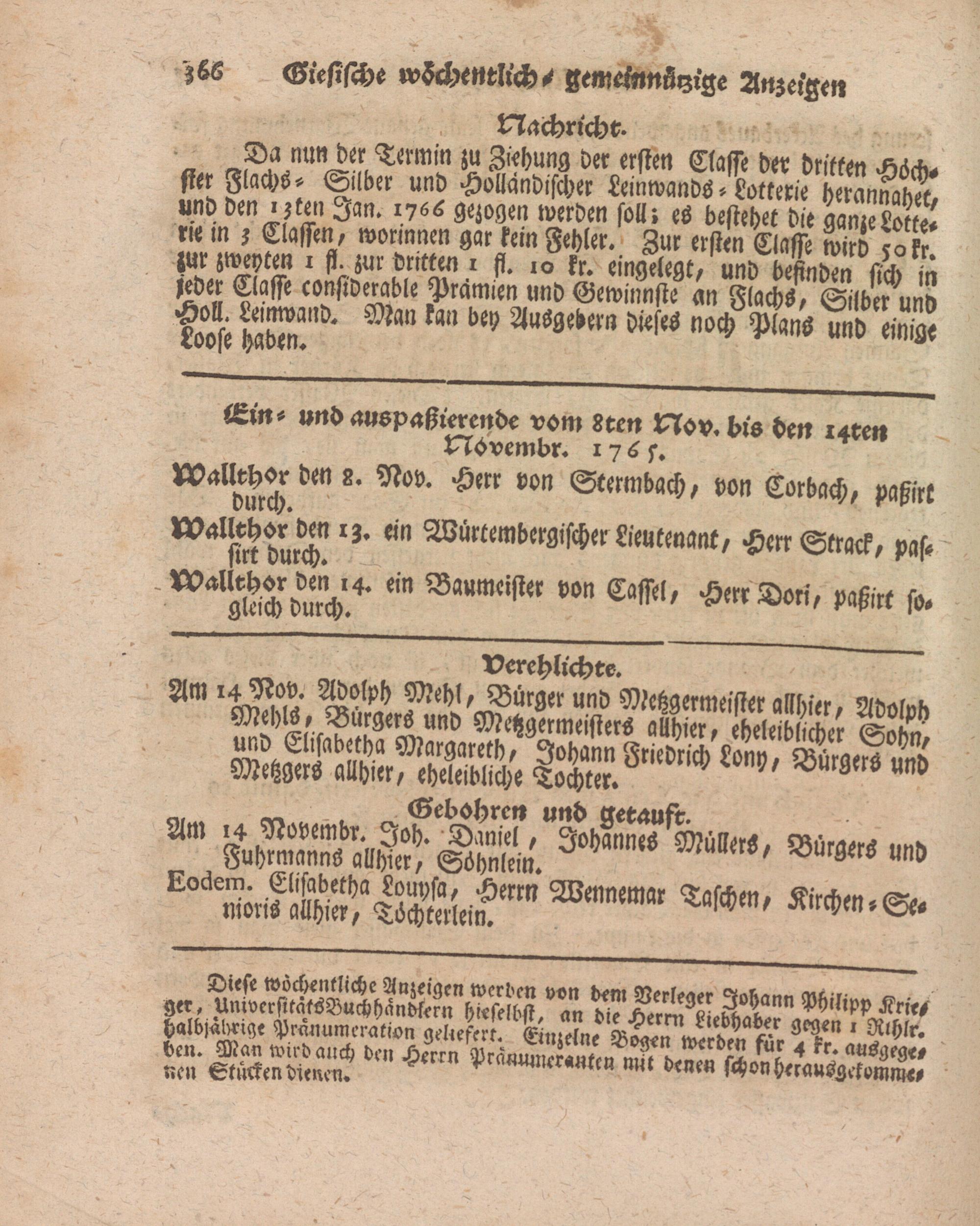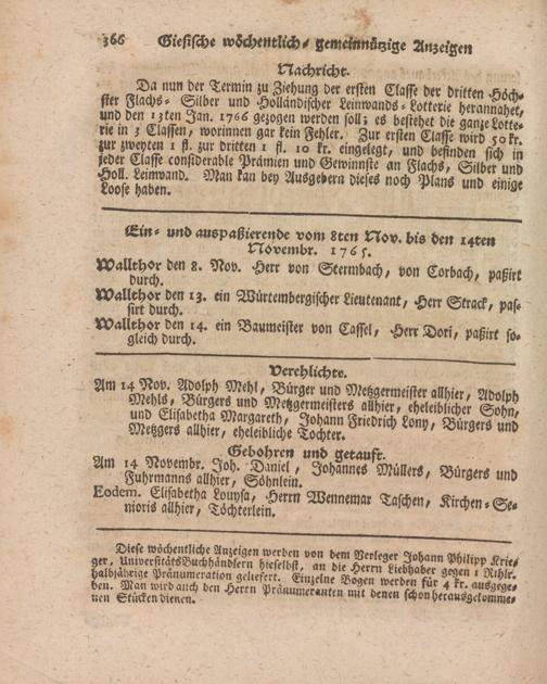 Giessische wöchentliche gemeinnützige Anzeigen und Nachrichten. 1764-1770