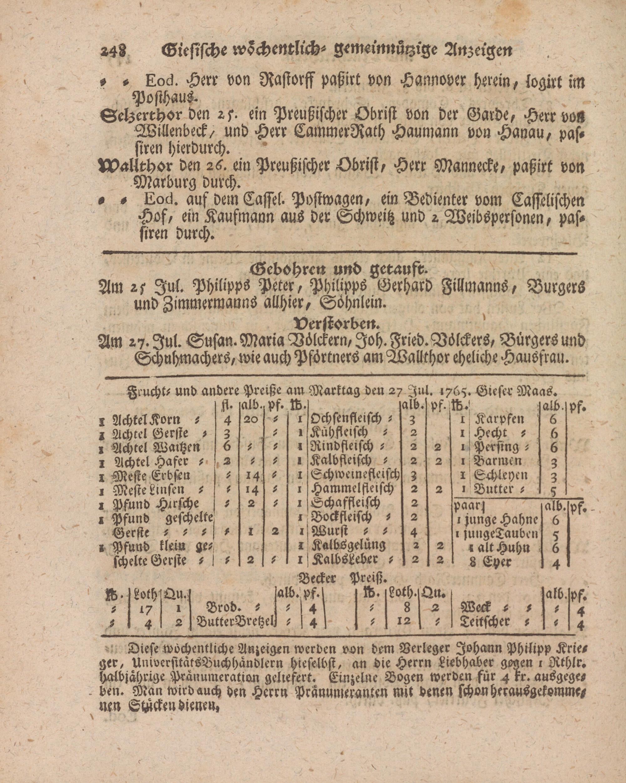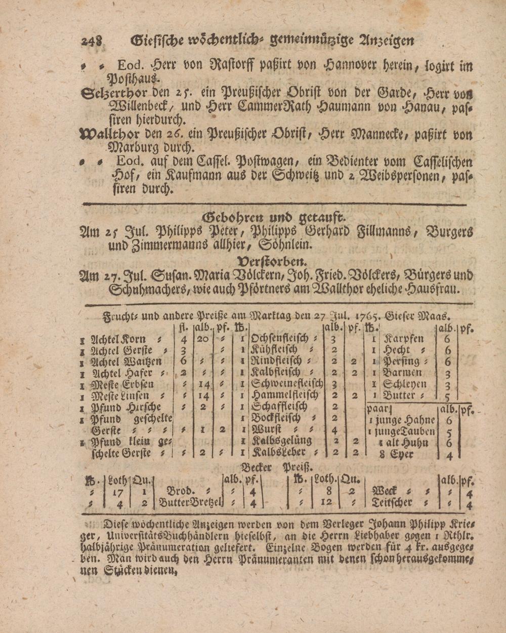 Giessische wöchentliche gemeinnützige Anzeigen und Nachrichten. 1764-1770